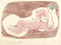 Arnold, Walter -  -  - Liegende mit Apfel