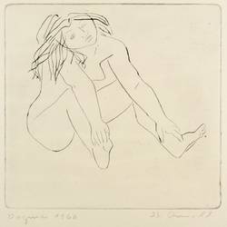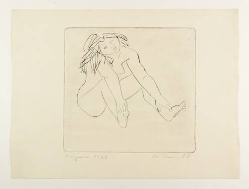 1966. Radierung / Kaltnadel, auf hellgelbem Maschinenpaier. – Originale Künstlergrafik, von Walter Arnold. – 27,7 x 29,1 cm (Darstellung / Platte), 50 x 38 cm (Blatt).