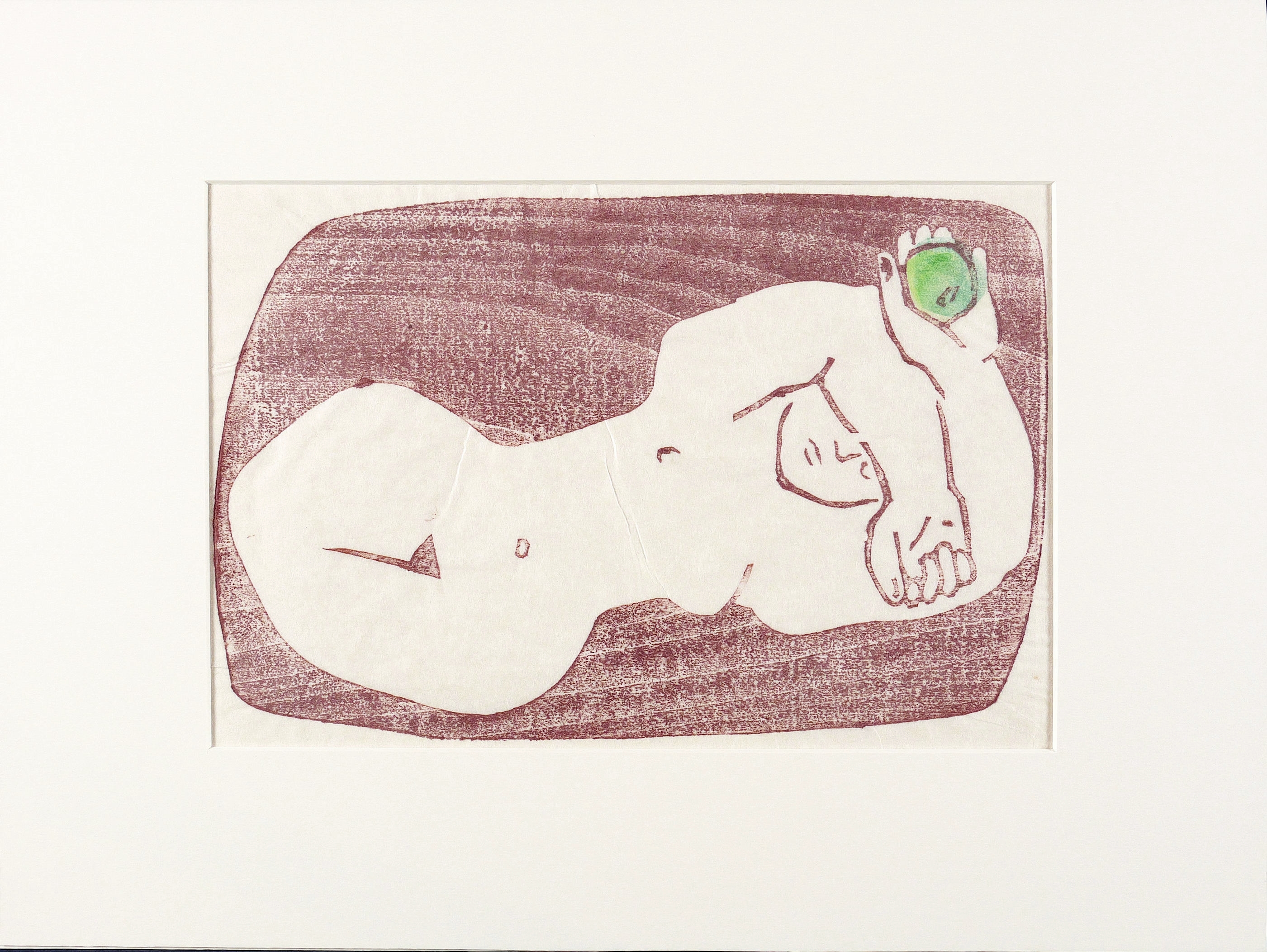 1978. Farbholzschnitt, Aquarellfarbe in Grün & Violett, auf Japanpapier. – Originale Künstlergrafik, von Walter Arnold. – 17,5 x 26,0 cm (Darstellung / Druckstock), 22 x 27 cm (Blatt), 30 x 40 cm (Passepartout).