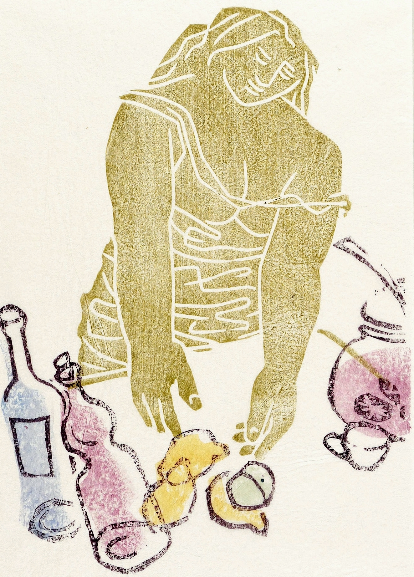1978. Farbholzschnitt, Aquarellfarbe in 6 Farben, auf Japanpapier. – Originale Künstlergrafik, von Walter Arnold. – 25,5 x 20,0 cm (Darstellung / Druckstock), 30 x 21 cm (Blatt), 40 x 30 cm (Passepartout).