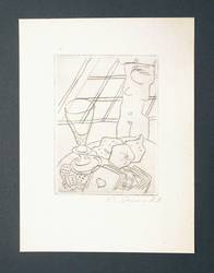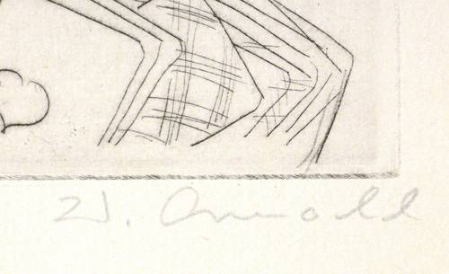 1975. Radierung / Strichätzung, in Schwarz, mit Plattenton, auf hellchamois Weißenborn. – Originale Künstlergrafik, von Walter Arnold. – 16,5 x 12,3 cm (Darstellung / Platte), 28 x 21 cm (Blatt).
