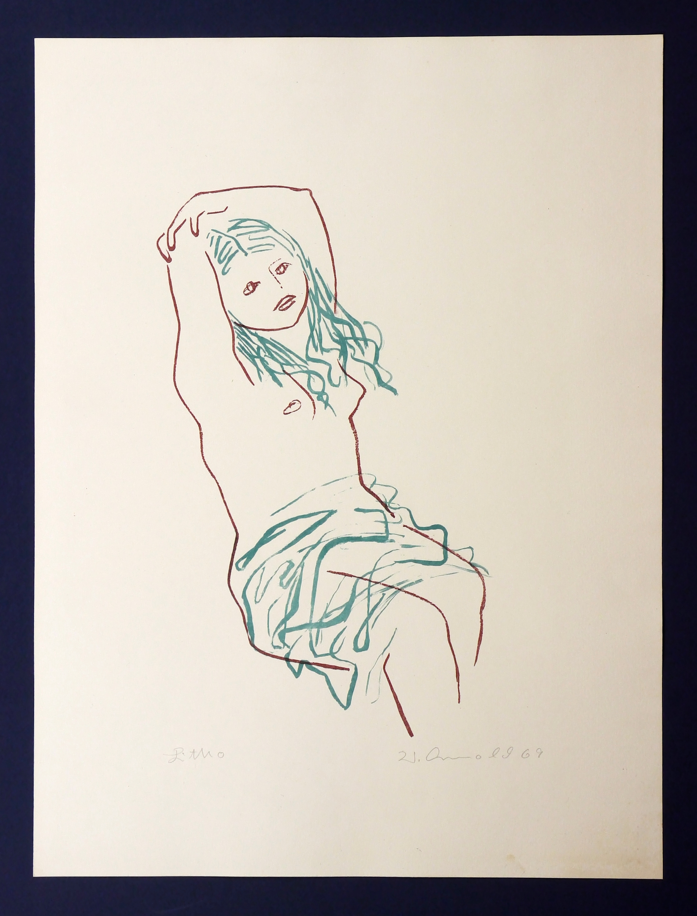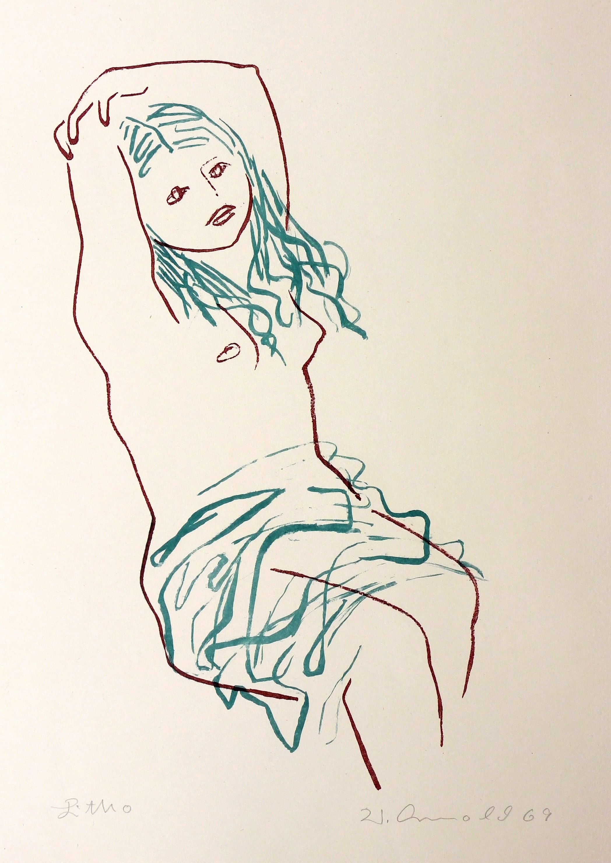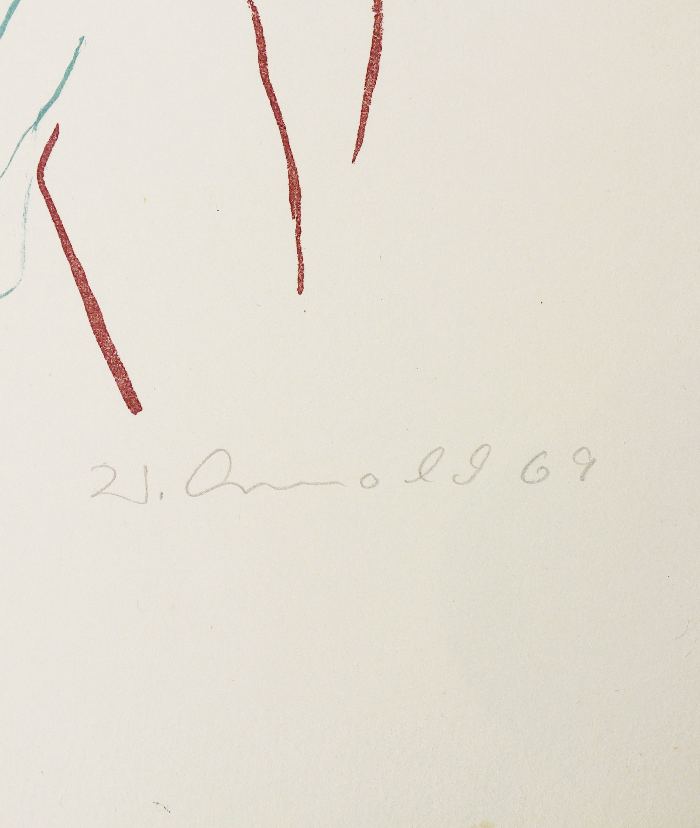 1967/1969. Farblithografie / Pinsellithografie, in Türkis & Violettschwarz, auf hellchamois Velinkarton. – Originale Künstlergrafik, von Walter Arnold. – 33,0 x 18,5 cm (Darstellung), 50 x 37 cm (Blatt).