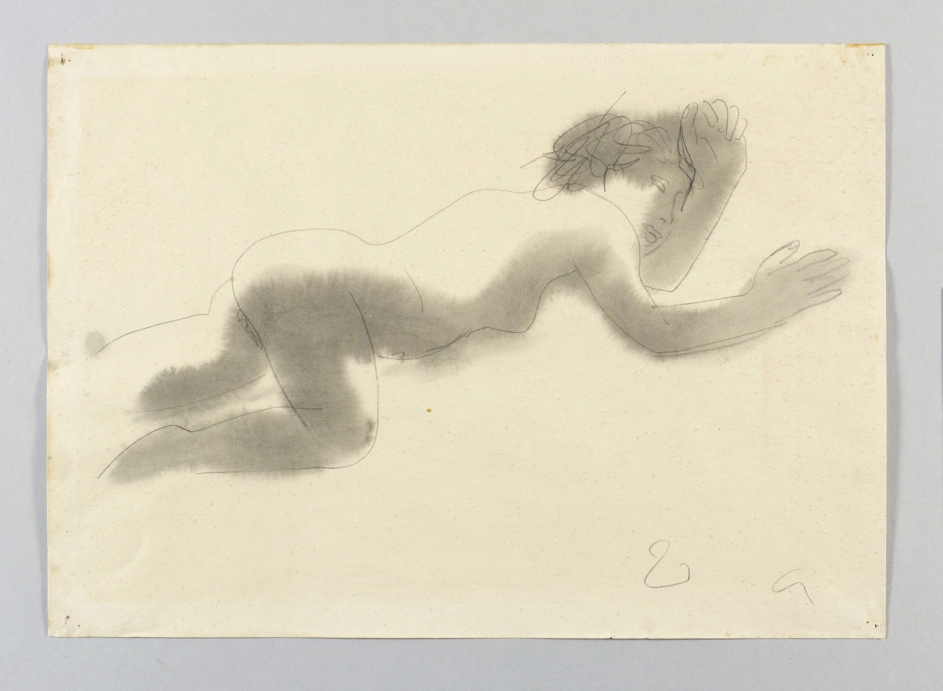Rechts unten in Bleistift signiert. – In den Ecken originale Reißzwecklöchlein. Verso leichte Montagespuren, Reste von Papiergelenken. Papier durchgehend kaum merklich stockfleckig sowie knickspurig. Sonst guter Erhaltungszustand.