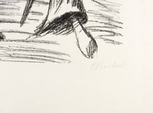Laur 73.05. Schult 199. – Rechts unten in Bleistift signiert: ″E Barlach″. Links Auflagenbezeichnung. Wasserzeichen. – Aus dem Zyklus ″Die Ausgestoßenen″, den der Verlag von Paul Cassirer in Berlin 1922 als lose Folge herausgab. – Breitrandiges Exemplar. Blattkante rechts mit kurzem restauriertem Riss. Papier sonst schön frisch und ohne Tadel. Insgesamt guter bis sehr guter Zustand.