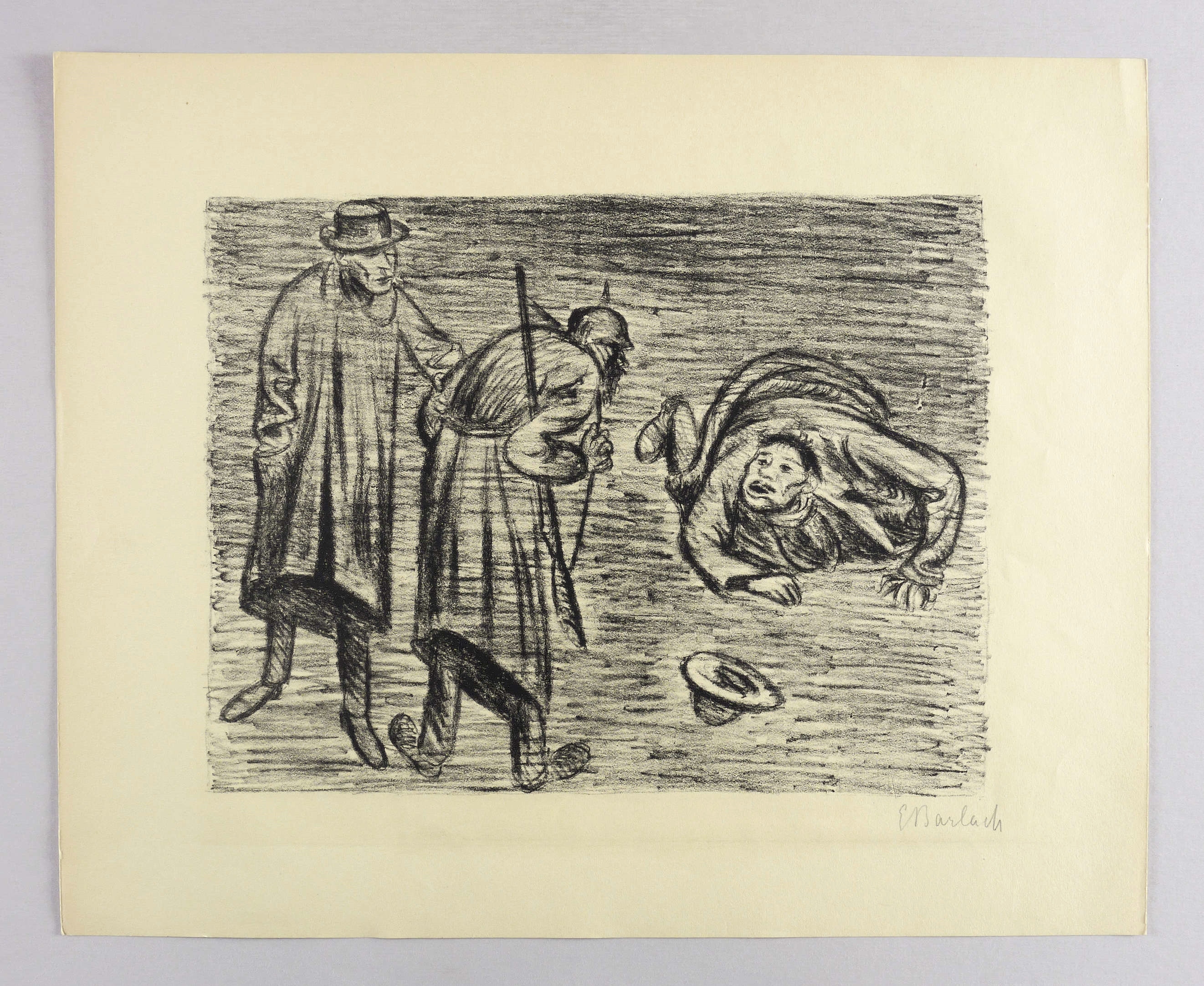 Laur 54.30. Schult 141. – Aus: Ernst Barlach, Der arme Vetter (Berlin: Paul Cassirer 1919). – Rechts unten in Bleistift signiert: ″EBarlach″. – Handsignierter Druck aus der Vorzugsausgabe (A2), die im Jahr 1919 in 80 Exemplaren erschien. – Tadellos erhalten. Sehr guter Zustand.