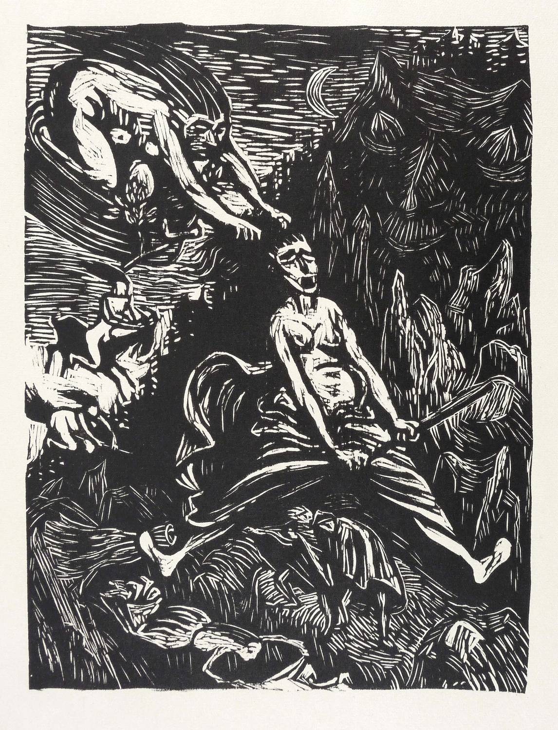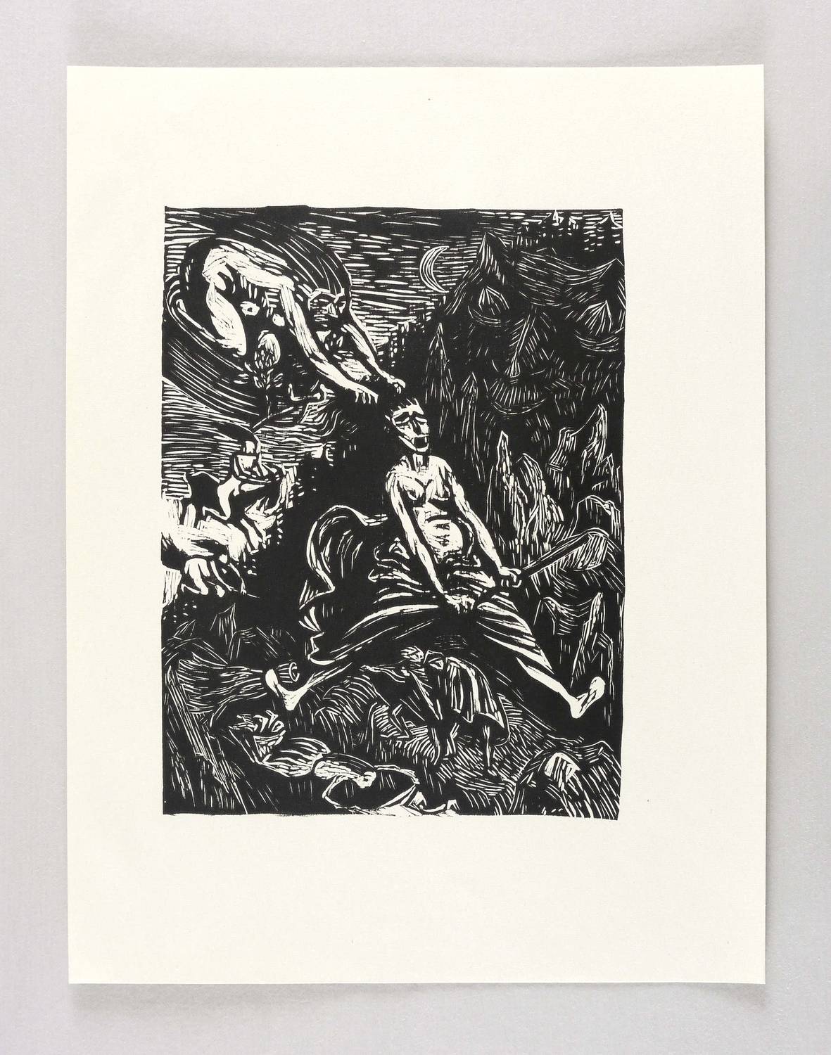 Laur 74.12. Schult 214. – Aus: Johann Wolfgang von Goethe, Walpurgisnacht. Mit 20 Holzschnitten von Ernst Barlach (Berlin: Paul Cassirer 1923). – Nicht handsigniert. – Exemplar aus der nicht Blatt für Blatt signierten Volksausgabe (B1/B2) der von Ernst Barlach illustrierten Walpurgisnacht von Johann Wolfgang von Goethe (Berlin: Paul Cassirer 1923). – Sehr guter Zustand.