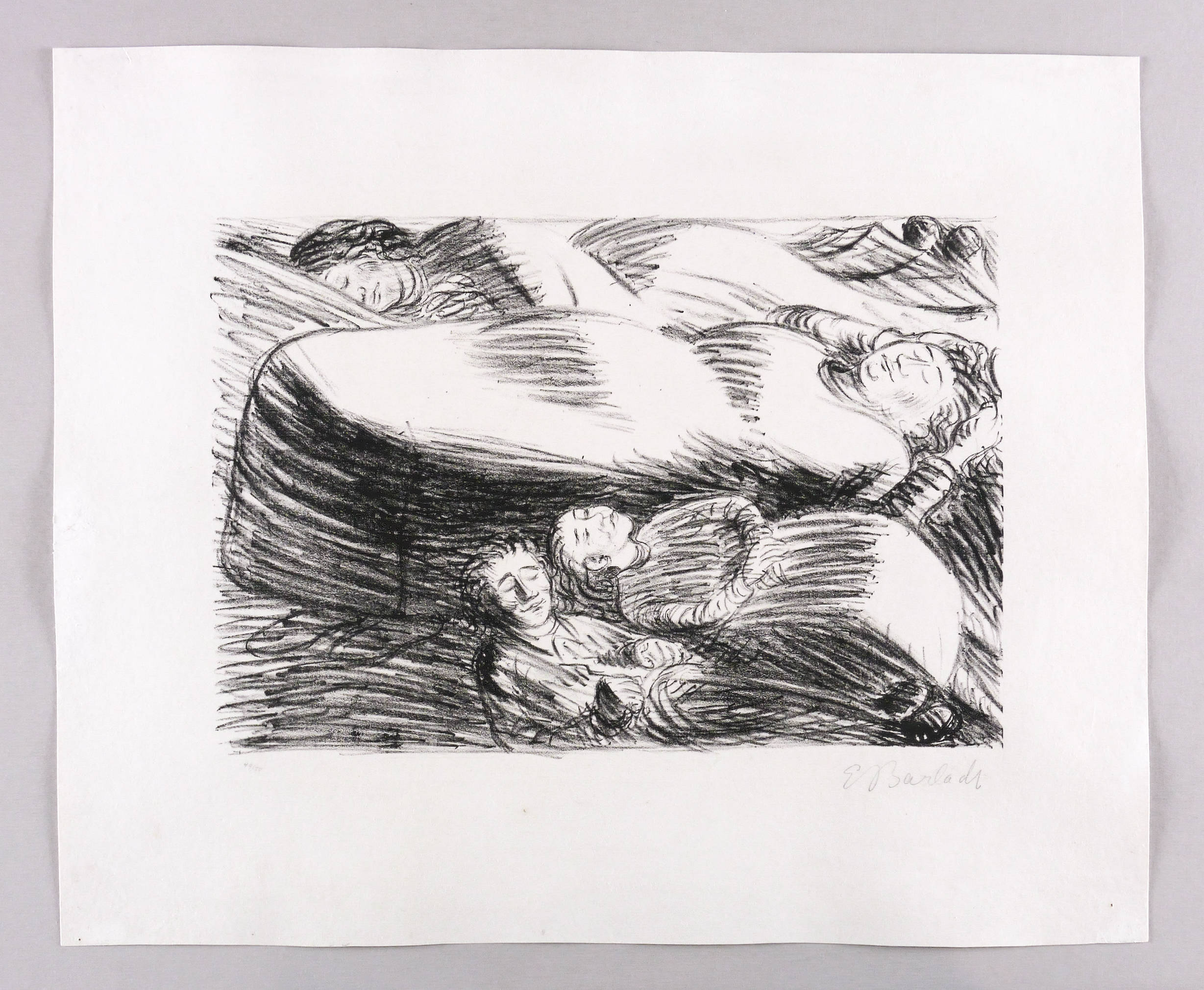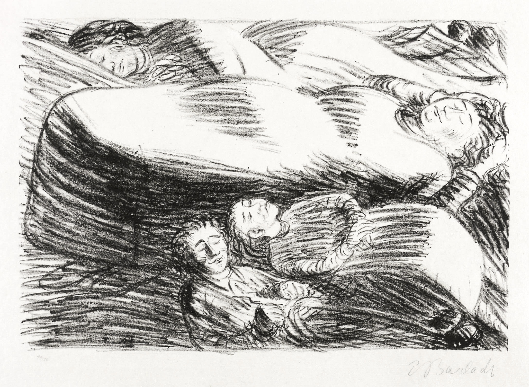 1916/1917. Lithografie / Kreidelithografie, in Schwarz, auf feinem hellchamois Van-Gelder-Zonen. – Originale Künstlergrafik, von Ernst Barlach. – Auflage Exemplar Nr. 49/50. – 27,5 x 40,0 cm (Darstellung / Druckbild), 46 x 56 cm (Blatt).