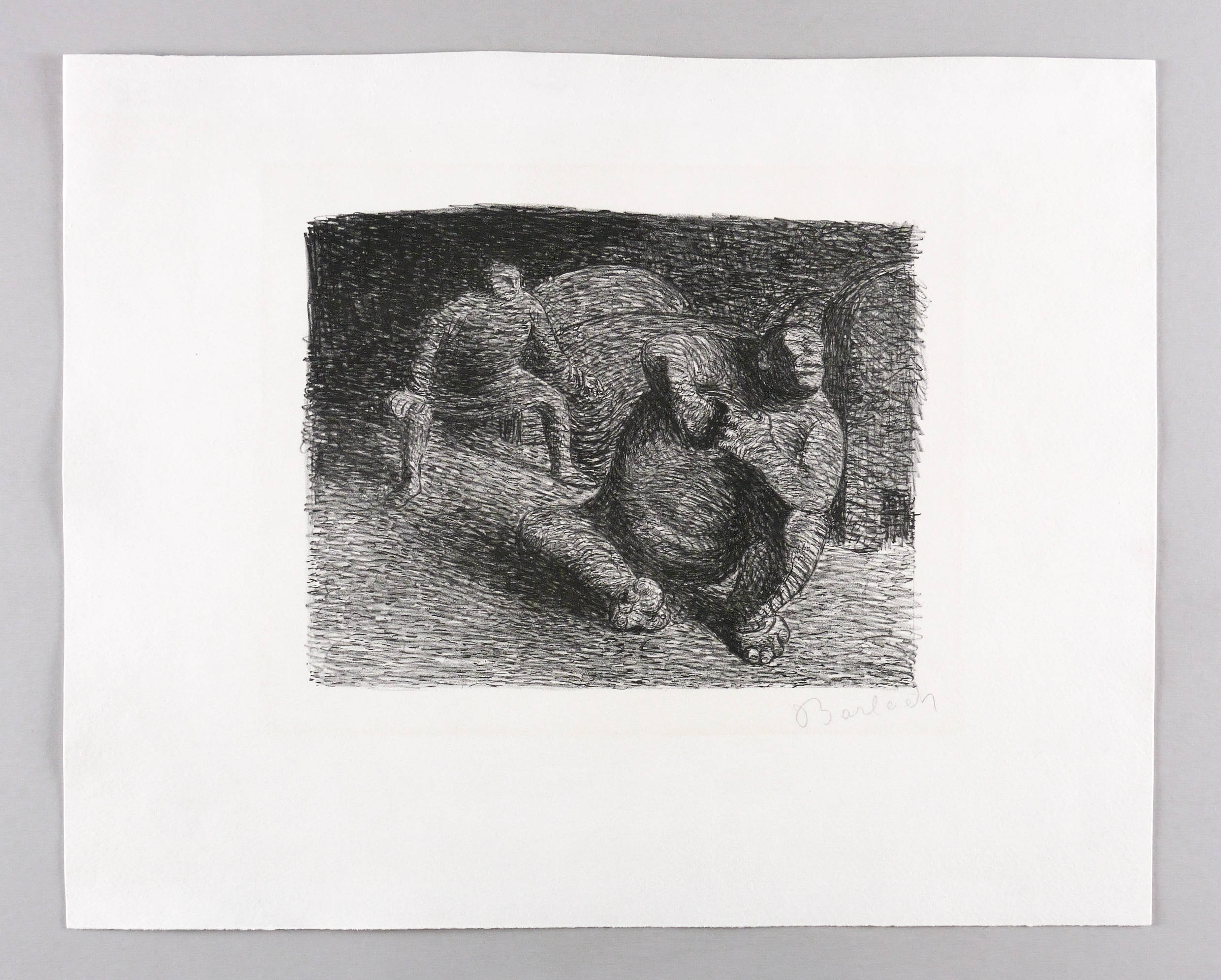 Laur 9.11. Schult 26. – Aus: Ernst Barlach, Der tote Tag. X. Werk der Pan-Presse (Berlin: Paul Cassirer 1912). – Rechts unten in Bleistift signiert: ″Barlach″. – Einblattdruck. – Breitrandiges Exemplar. Schwach ausgeprägte Lichtränder um die Darstellung. Guter Zustand.