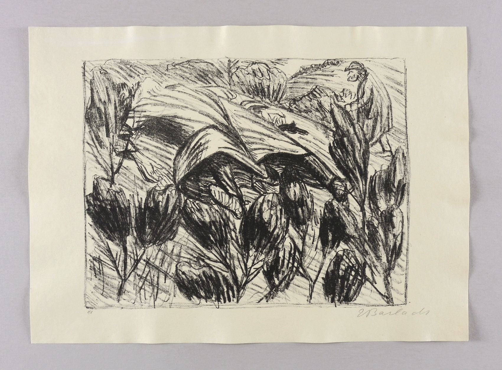 1919. Lithografie / Kreidelithografie, in Schwarz, auf festem gelblichem Velin. – Originale Künstlergrafik, von Ernst Barlach. – Auflage Exemplar Nr. 5/80. – 27,0 x 35,0 cm (Darstellung / Druckbild), 34 x 48 cm (Blatt).