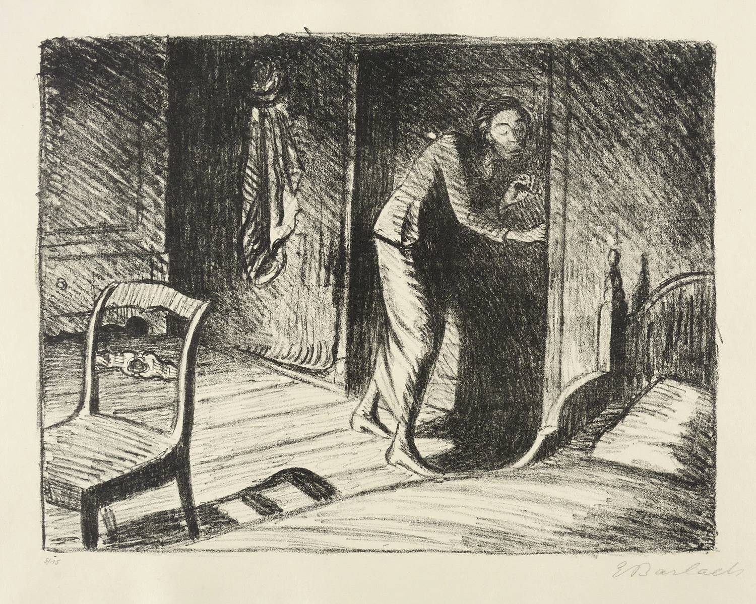 1919. Lithografie / Kreidelithografie, in Schwarz, auf festem gelblichem Velin. – Originale Künstlergrafik, von Ernst Barlach. – Auflage Exemplar Nr. 5/80. – 27,0 x 35,0 cm (Darstellung / Druckbild), 34 x 48 cm (Blatt).