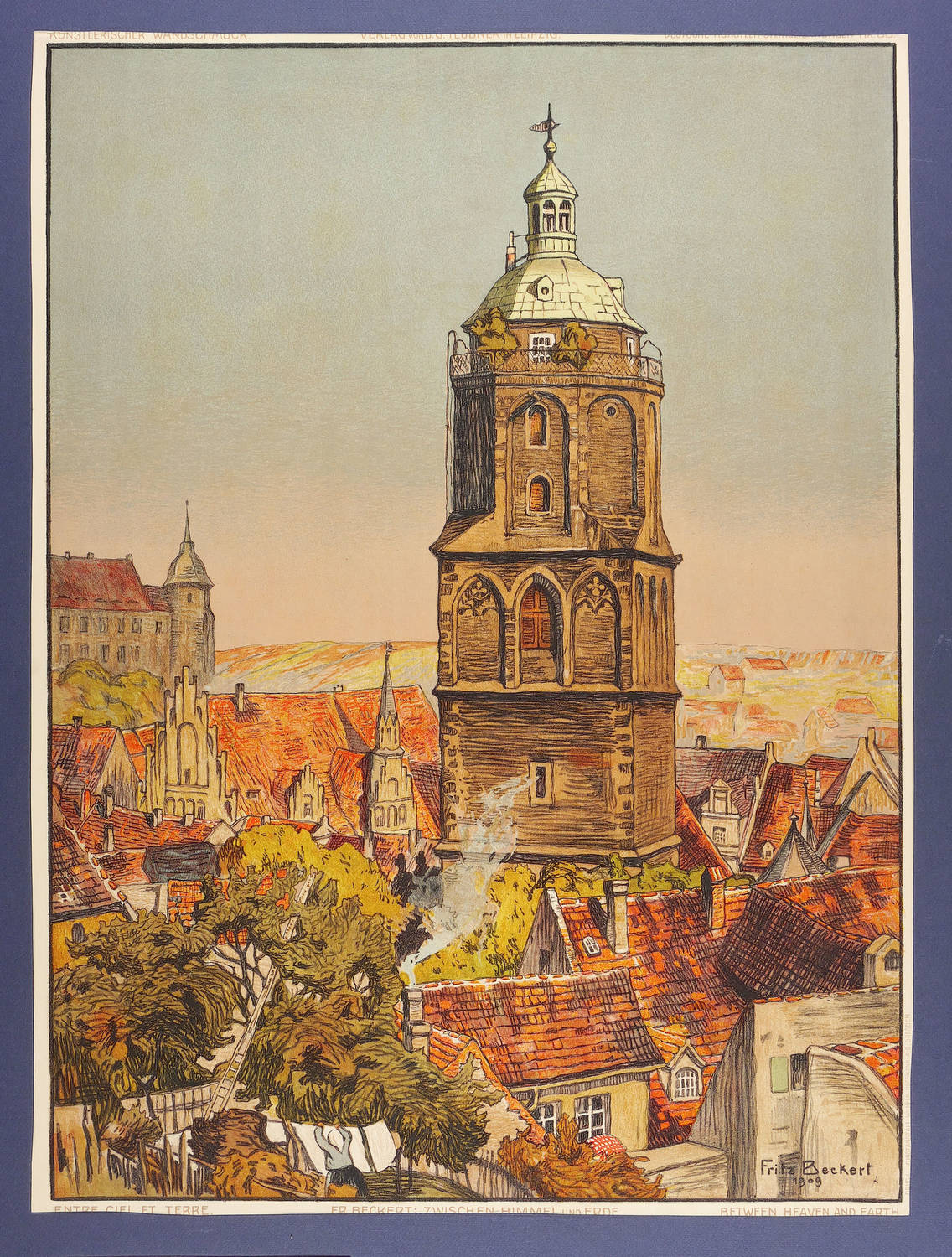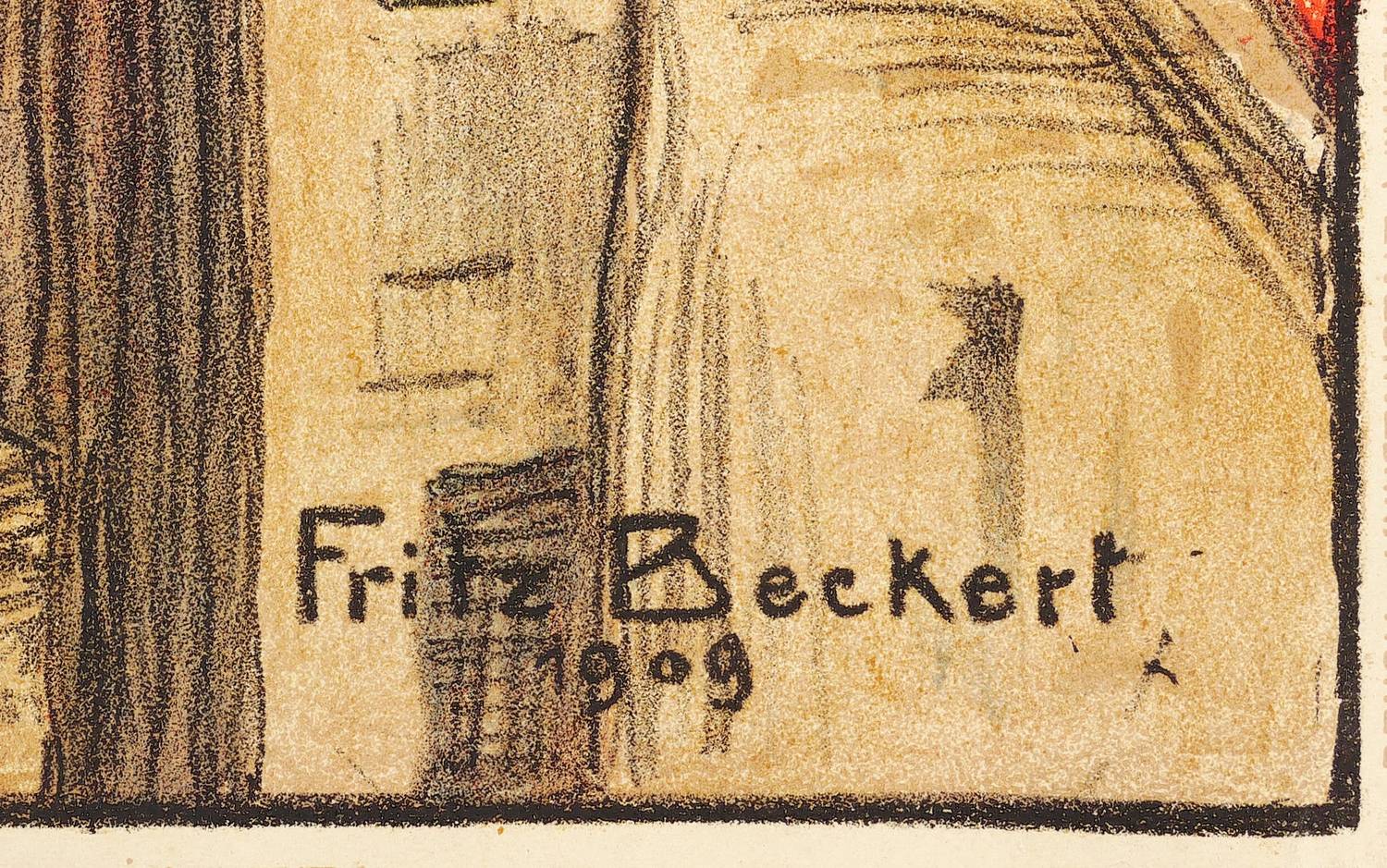 1909. Farblithografie / Kreidelithografie, in 7 Farben, auf glattem Karton. – Originale Künstlergrafik, von Fritz Beckert. – 75,1 x 55,5 cm (Darstellung / Einfassungslinie), 77 x 58 cm (Blatt).