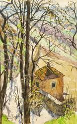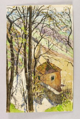 1951. Aquarell, über schwarzer Kreide, auf leichtem Velin. – Originale Künstlergrafik, von Fritz Beckert. – Unikat. – 24,6 x 15,5 cm (Darstellung / Blatt).