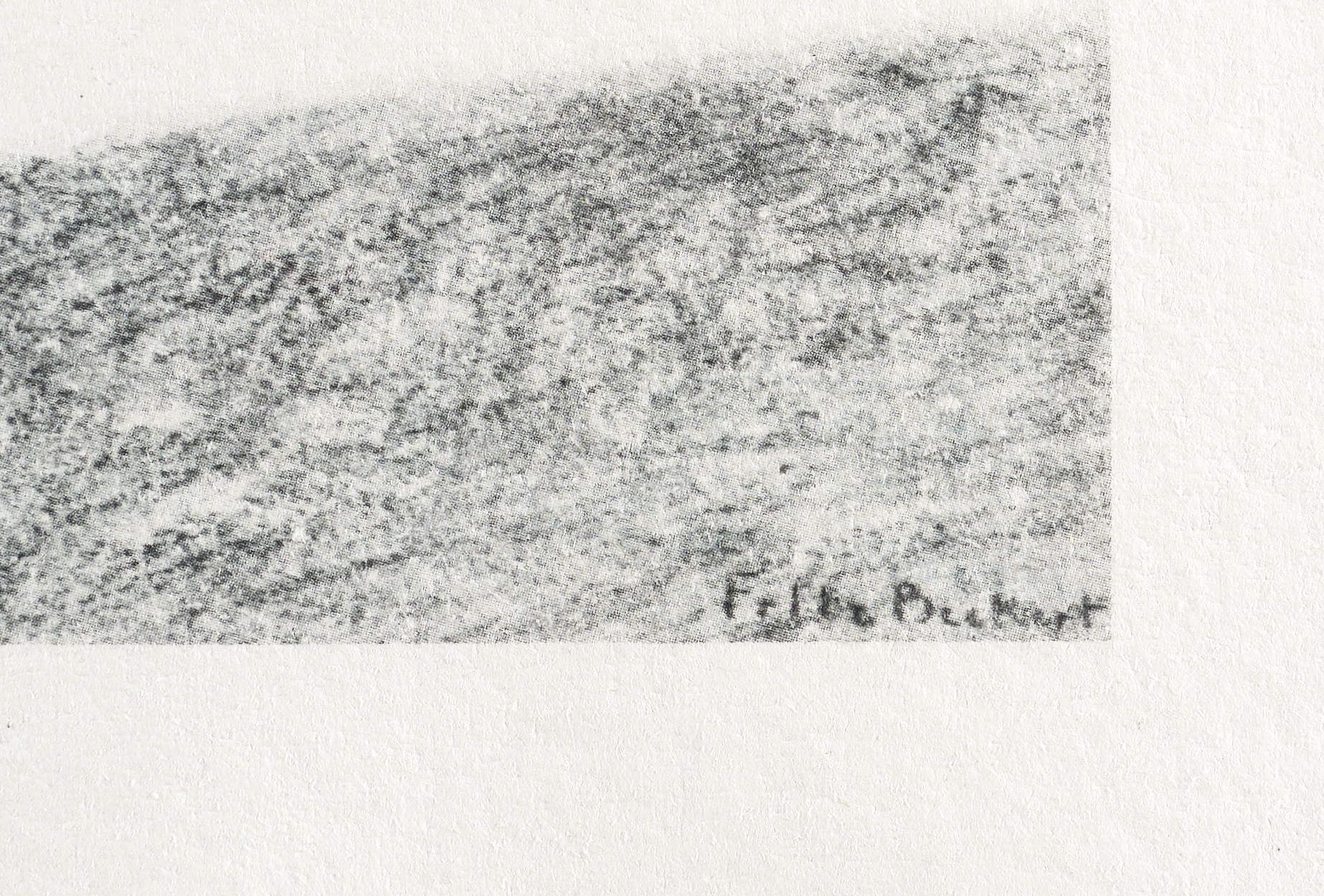 1949. Lithografie / Offsetlithografie, in Schwarz, über beiger Tonplatte, auf Karton. – Originale Künstlergrafik, von Fritz Beckert. – 27,7 x 37,1 cm (Darstellung / Tonplatte), 33,5 x 42,5 cm (Blatt).