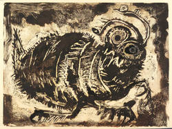 1966. Monotypie, in Schwarz, mit Bleistift überarbeitet, auf Maschinenpapier. – Originale Künstlergrafik, von Agathe Böttcher. – Unikat. – 30,0 x 39,5 cm (Darstellung), 31 x 49 cm (Blatt).