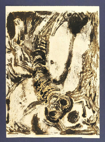 1966. Farbmonotypie, in Grau & Schwarz, auf Papier. – Originale Künstlergrafik, von Agathe Böttcher. – Unikat. – 39,5 x 29,8 cm (Darstellung), 42 x 30 cm (Blatt).