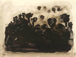 1969. Zeichnung / Pinselzeichnung, in schwarzer Tusche, grau laviert, auf Karton. – Originale Künstlergrafik, von Agathe Böttcher. – Unikat. – 24,0 x 32,0 cm (Darstellung / Blatt), 30 x 42 cm (Trägerblatt).