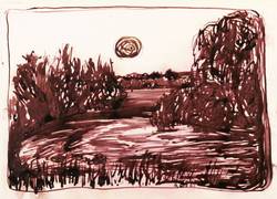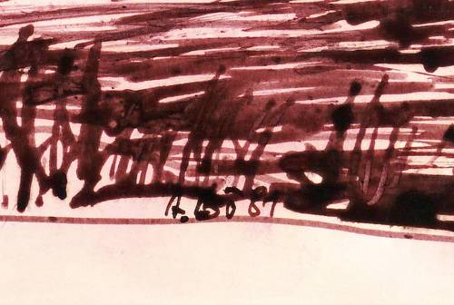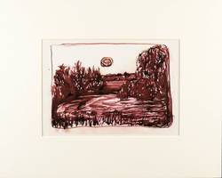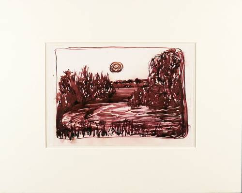 1981. Zeichnung / Pinselzeichnung, in rotbrauner Tusche, auf Papier. – Originale Künstlergrafik, von Agathe Böttcher. – Unikat. – 20,3 x 28,4 cm (Darstellung / Blatt), 36 x 48 cm (Trägerblatt), 40 x 50 cm (Passepartout).