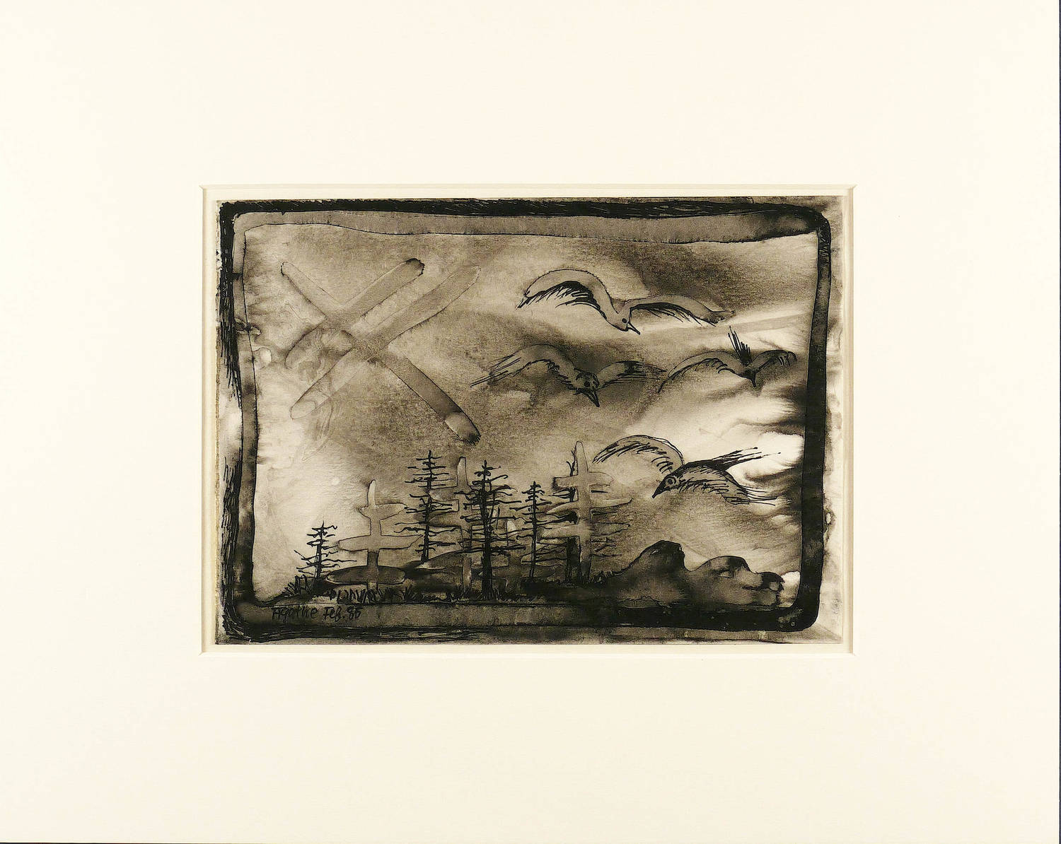 Links unten in schwarzer Feder signiert und datiert. – Von der Künstlerin original auf Trägerblatt gesetzt. Im Passepartout montiert. Sehr gut erhalten.
