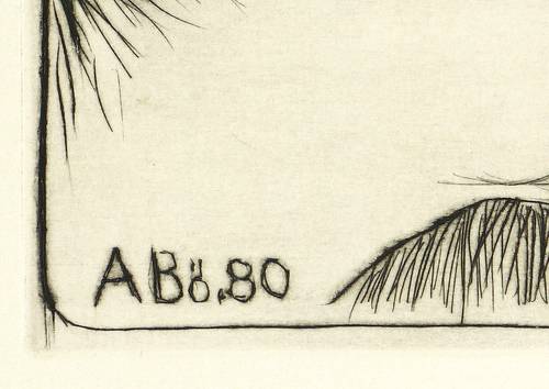1980. Radierung / Kaltnadelradierung, in Schwarz, auf Hahnemühle-Bütten. – Originale Künstlergrafik, von Agathe Böttcher. – Auflage Exemplar Nr. 4/5. – 24,5 x 32,0 cm (Darstellung / Platte), 52 x 39,5 cm (Blatt).