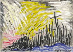 2004. Mischtechnik / Tusche & Gouache, auf hellgrauem Karton. – Originale Künstlergrafik, von Agathe Böttcher. – Unikat. – 21,2 x 29,5 cm (Darstellung / Blatt).