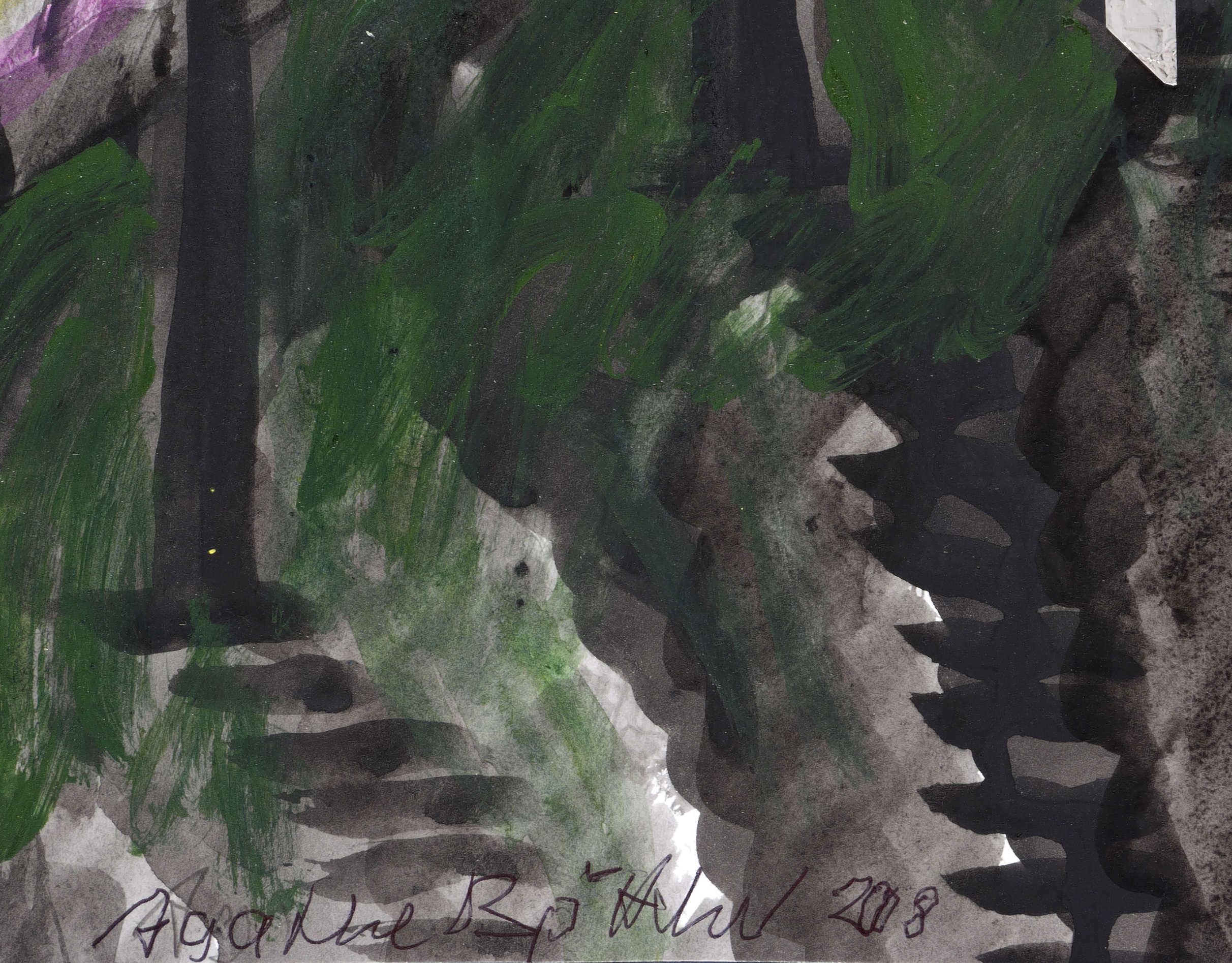 2008. Zeichnung / Pinselzeichnung, in Tusche & Acryl, mit Alufolie-Applikationen, auf Karton. – Originale Künstlergrafik, von Agathe Böttcher. – Unikat. – 30,2 x 24,0 cm (Darstellung / Blatt).