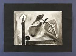 Böttcher, Agathe. – „Stillleben mit Kerze und Birne”.