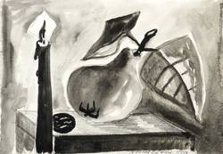 Böttcher, Agathe -  -  - Stillleben mit Kerze und Birne