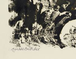 Links unten in Kugelschreiber signiert. Rechts dazu in Bleistift betitelt und datiert. – Rechts oben Ölausblühung aus der Druckfarbe. Kleiner Einriss außerhalb der Darstellung an der rechten Blattkante. Insgesamt guter Erhaltungszustand.