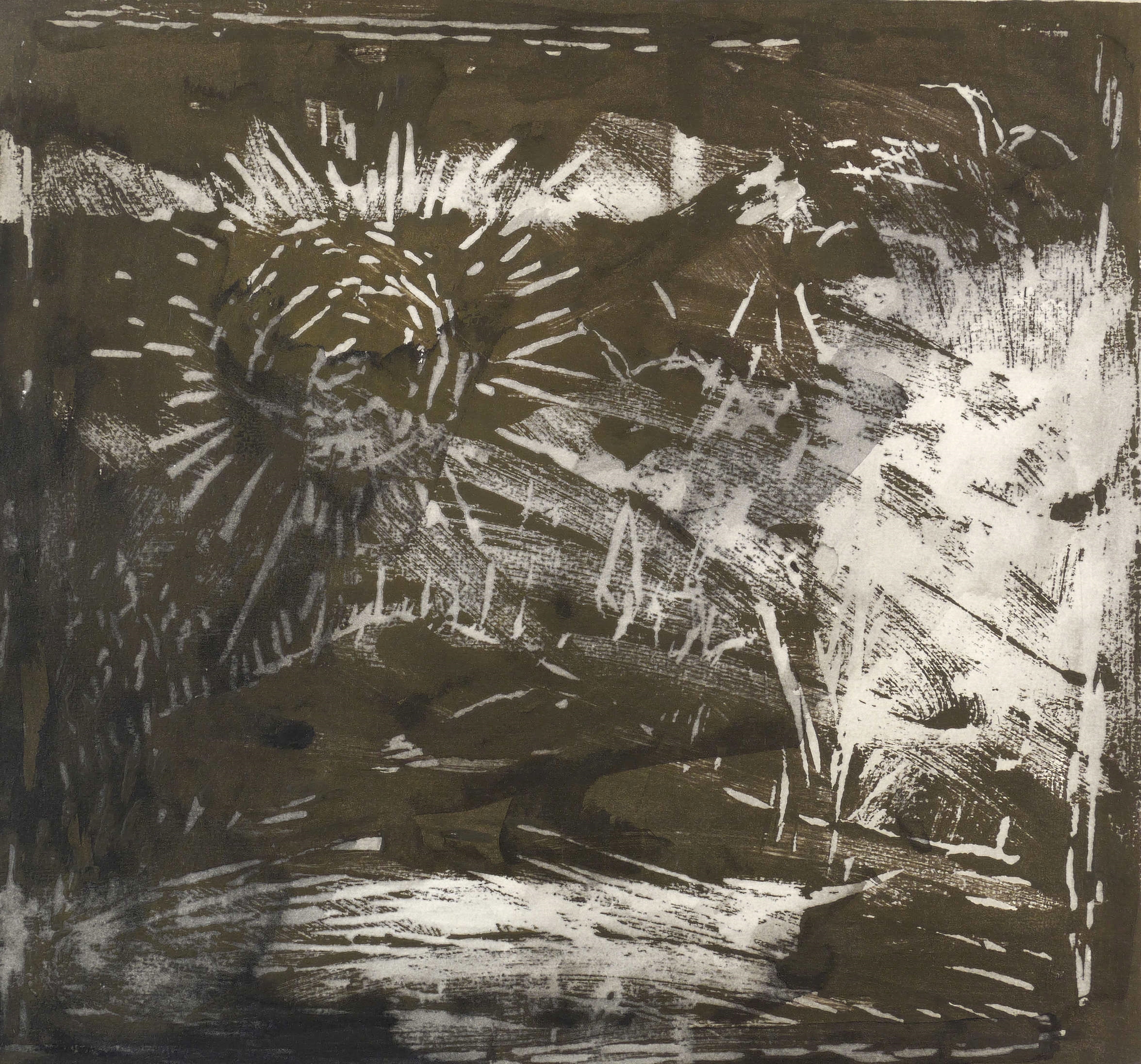 1960-1970. Zeichnung / Schabtechnik, in Schwarz, auf Karton. – Originale Künstlergrafik, von Agathe Böttcher. – Unikat. – 35,8 x 38,5 cm (Darstellung), 36,5 x 43,0 cm (Blatt).