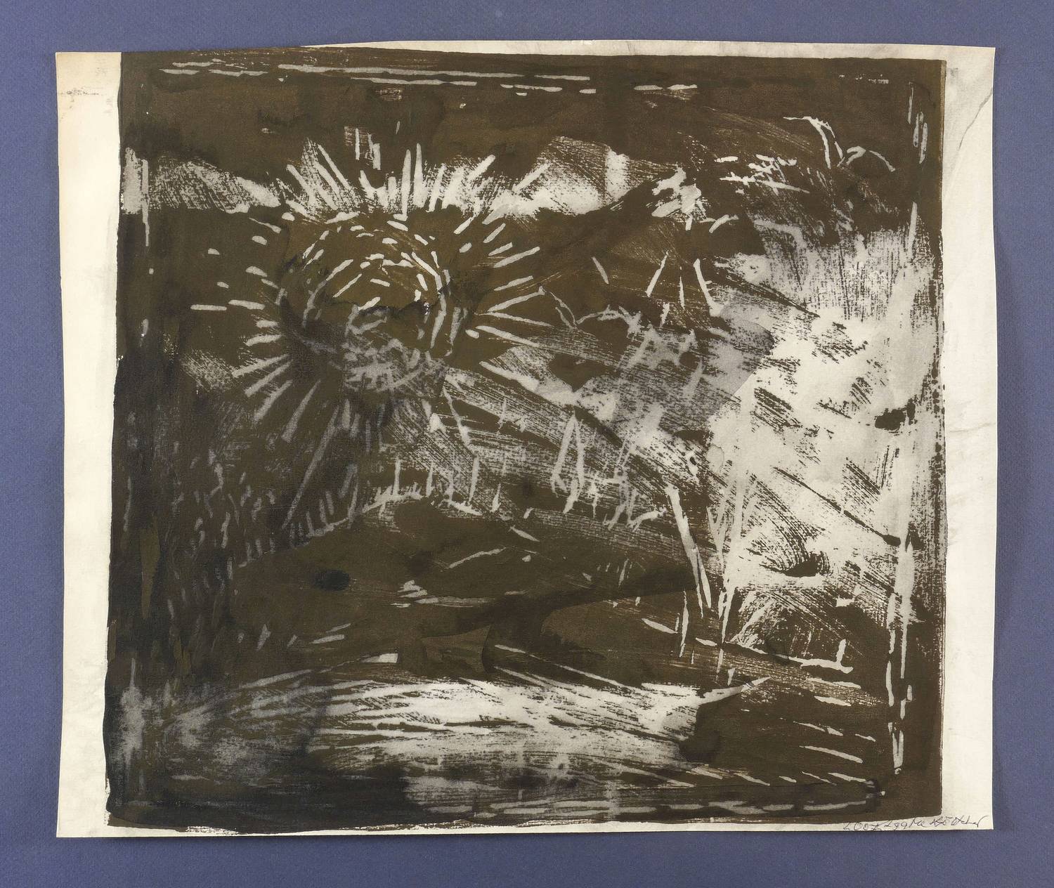 Rechts unten in Kugelschreiber signiert. – Knickspur in der linken unteren Blatthälfte. Spuren des Arbeitsprozesses. Insgesamt guter Erhaltungszustand.