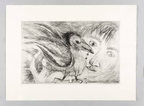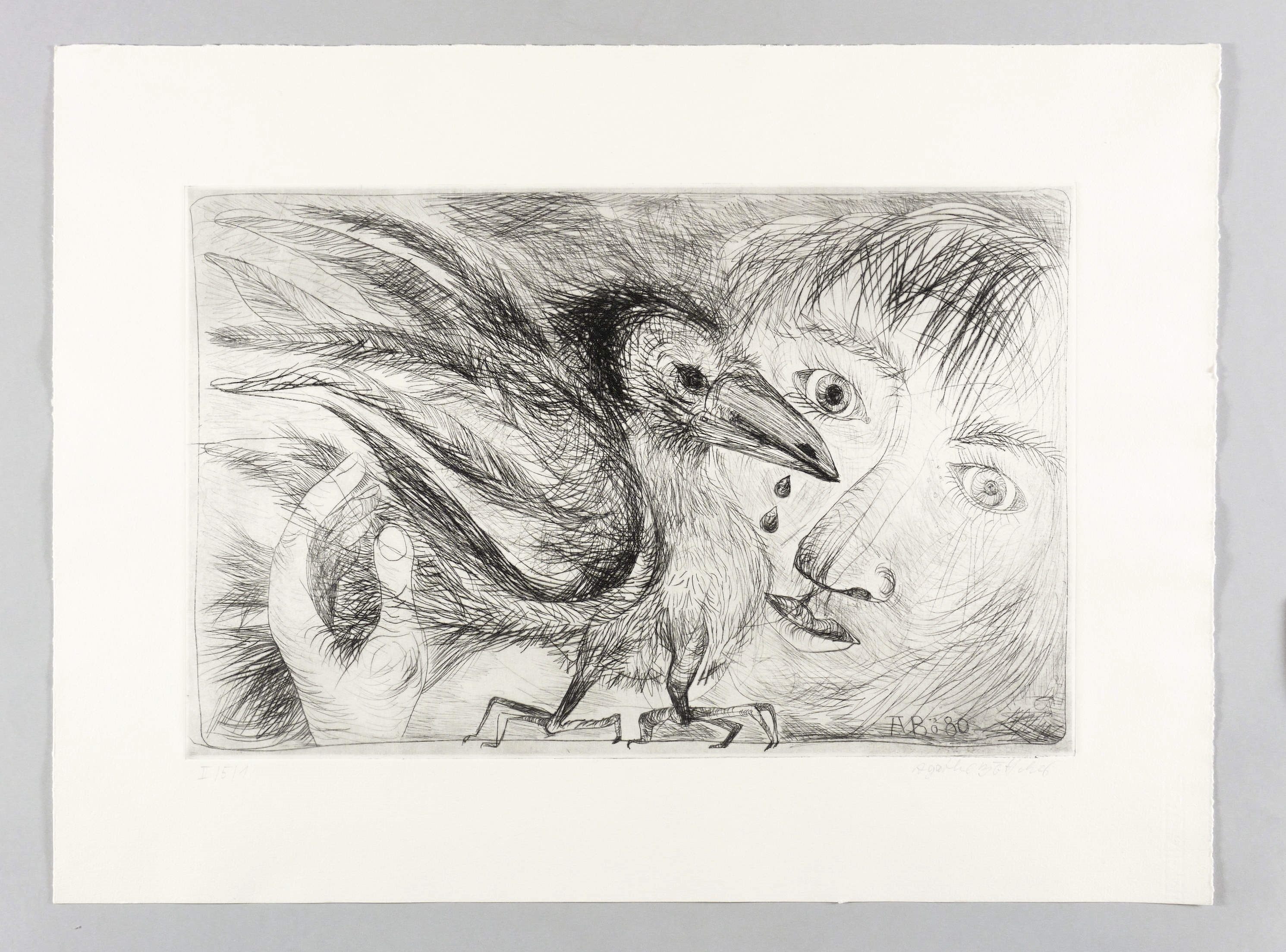 1980. Radierung / Strichätzung & Kaltnadel, mit leichtem Plattenton, in Schwarz, auf Hahnemühle-Bütten. – Originale Künstlergrafik, von Agathe Böttcher. – Auflage Exemplar Nr. 1/5. – 32,0 x 49,4 cm (Darstellung / Platte), 48 x 65 cm (Blatt).