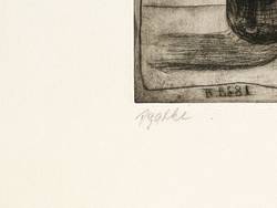1981. Radierung / Kaltnadel, in Schwarz, mit reichlich Plattenton, auf hartem hellem Velin. – Originale Künstlergrafik, von Agathe Böttcher. – Auflage Exemplar Nr. 3/4. – 20,1 x 14,2 cm (Darstellung / Platte), 50 x 38 cm (-).