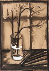 1989. Zeichnung / Pinselzeichnung, in schwarzer Tusche, mit Folienapplikation, auf Tonpapier. – Originale Künstlergrafik, von Agathe Böttcher. – Unikat. – 29,7 x 20,8 cm (Darstellung / Blatt), 35 x 25 cm (Trägerkarton).