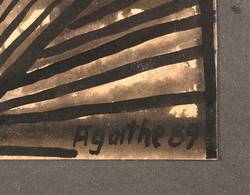 Rechts unten in schwarzer Tusche signiert und datiert: ″Agathe 89″. – Original auf schwarzem Trägerkarton montiert. Sehr guter Zustand.