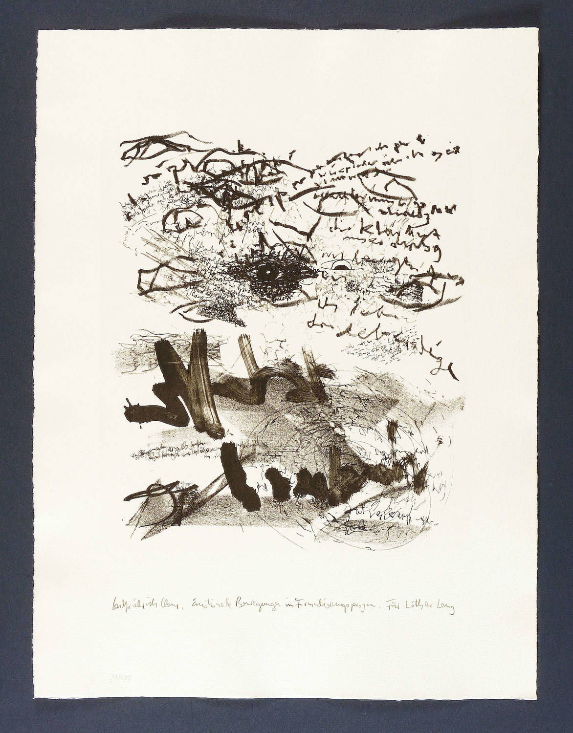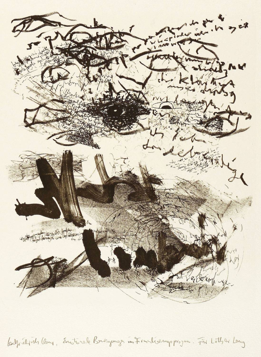 1968/1987. Lithografie / Pinsel-, Kreide- & Federlithografie, in Schwarz, auf hellchamois Hahnemühle. – Originale Künstlergrafik, von Carlfriedrich Claus. – Auflage Exemplar Nr. 27/100. – 30,0 x 25,5 cm (Darstellung / Stein), 48 x 36 cm (Blatt).