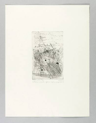 1975. Radierung / Strichätzung & Vernis mou, in Schwarz, auf Kupferdruckpapier. – Originale Künstlergrafik, von Carlfriedrich Claus. – Probedruck. – 19,1 x 12,5 cm (Darstellung / Platte), 45 x 34 cm (Blatt).