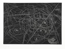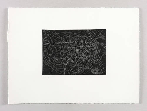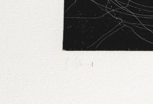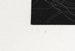 1991. Radierung / Strichätzung, im Hochdruck, in Schwarz, auf hellchamois Hahnemühle. – Originale Künstlergrafik, von Carlfriedrich Claus. – 12,6 x 17,7 cm (Darstellung / Platte), 27 x 36 cm (Blatt).