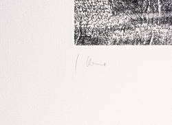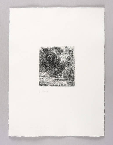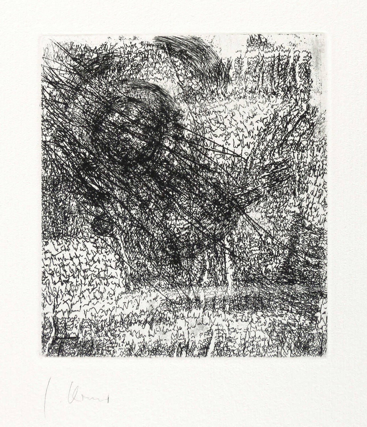 1991. Radierung / Strichätzung & Kaltnadel, in Schwarz, auf schwerem hellchamois Hahnemühle. – Originale Künstlergrafik, von Carlfriedrich Claus. – 11,4 x 10,0 cm (Darstellung), 36 x 27 cm (Blatt).