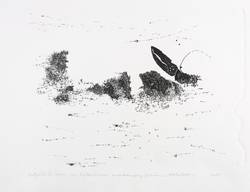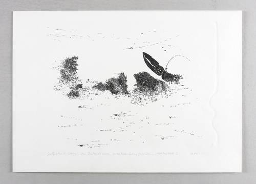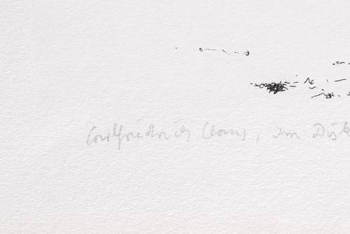 1989. Lithografie / Federlithografie, in Schwarz, auf festem hellchamois Velinkarton. – Originale Künstlergrafik, von Carlfriedrich Claus. – 21,2 x 27,5 cm (Darstellung / Druckbild), 28 x 41 cm (Blatt).