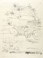 1978. Offsetlithografie / Feder-, Pinsel- & Kreidelithografie, in Schwarz, auf glattem hellchamois Velinkarton. – Originale Künstlergrafik, von Carlfriedrich Claus. – Künstlerexemplar (e.a.). – 43,6 x 33,3 cm (Darstellung / Druckbild), 48,9 x 34,9 cm (Blatt).