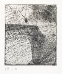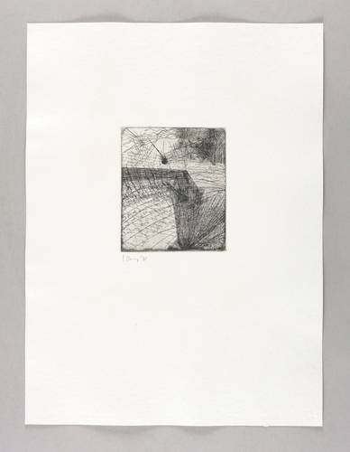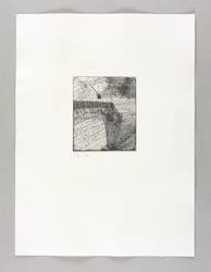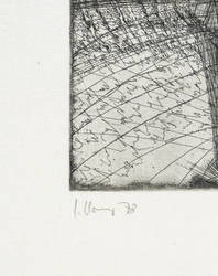 1978. Radierung / Strichätzung, in Schwarz, auf hellgelbem Kupferdruckpapier. – Originale Künstlergrafik, von Carlfriedrich Claus. – 15,2 x 12,6 cm (Darstellung / Platte), 49 x 36 cm (Blatt).