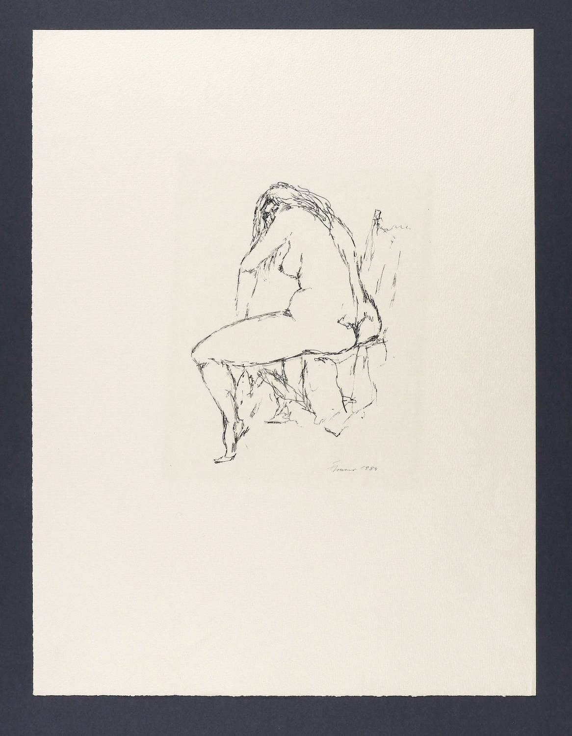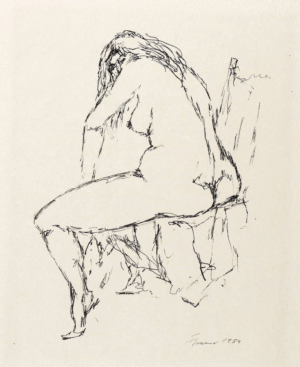 1984. Lithografie / Federlithografie, in Schwarz, auf hellchamois Velinkarton. – Originale Künstlergrafik, von Fritz Cremer. – 22,0 x 17,0 cm (Darstellung), 50 x 38 cm (Blatt).