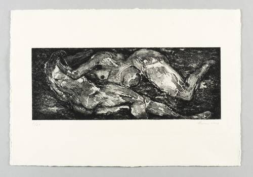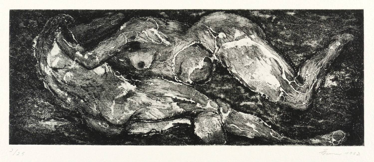 1967. Radierung / Aquatinta, in Schwarz, auf weißem Velinkarton. – Originale Künstlergrafik, von Fritz Cremer. – Auflage Exemplar Nr. 2/25. – 12,5 x 32,3 cm (Darstellung / Platte), 27 x 39 cm (Blatt).