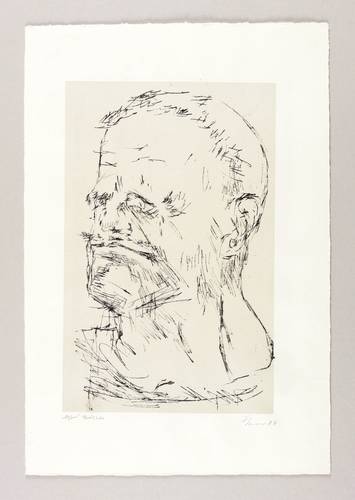 Alfred Hrdlicka (1928 Wien - 2009 Wien). Österreichischer Maler, Grafiker und Bildhauer. 1946-52 Studium der Malerei an der Akademie der Bildenden Künste Wien bei Albert Paris Gütersloh und Josef Dobrowsky. 1953-57 Studium der Bildhauerei bei Fritz Wotruba. Seit 1966 beschäftigte er sich in seinen Werken mit dem Leid psychisch kranker Menschen. 1967 schuf er die Büste für Karl Renner in Wien. Ab Anfang der 1970er Jahre wurde er als Professor an verschiedene Universitäten in Deutschland und Österreich berufen (z.B. nach Stuttgart, Hamburg und Berlin). 1985 Retrospektive in der Akademie der Künste Berlin. 1988 gestaltete er das Mahnmal gegen Krieg und Faschismus auf dem Albertina-Platz in Wien.