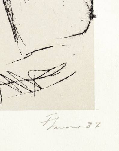 1987. Lithografie / Federlithografie, in Schwarz, über hellgrauer Tonplatte, auf weißem Velin. – Originale Künstlergrafik, von Fritz Cremer. – 27,8 x 17,3 cm (Darstellung / Druckbild), 28,7 x 18,2 cm (Tonplatte), 39 x 27 cm (Blatt).