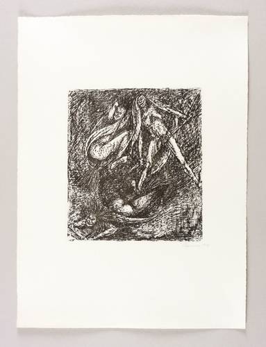 1956. Lithografie / Kreide- & Federlithografie, in Schwarz, auf leichtem hellchamois Velin. – Originale Künstlergrafik, von Fritz Cremer. – Auflage 50 Exemplare. – 21,6 x 19,0 cm (Darstellung / Druckbild), 44 x 32 cm (Blatt).