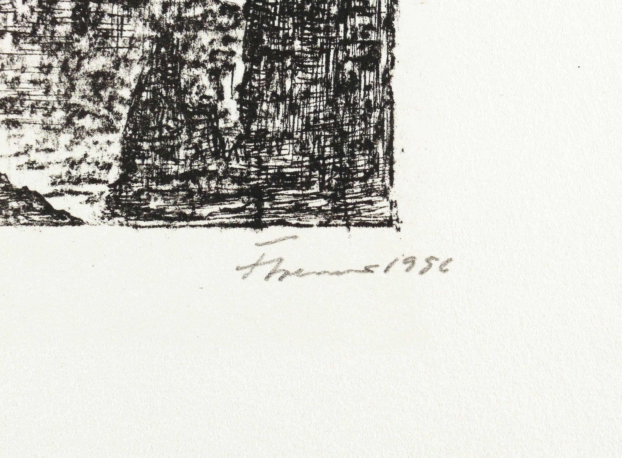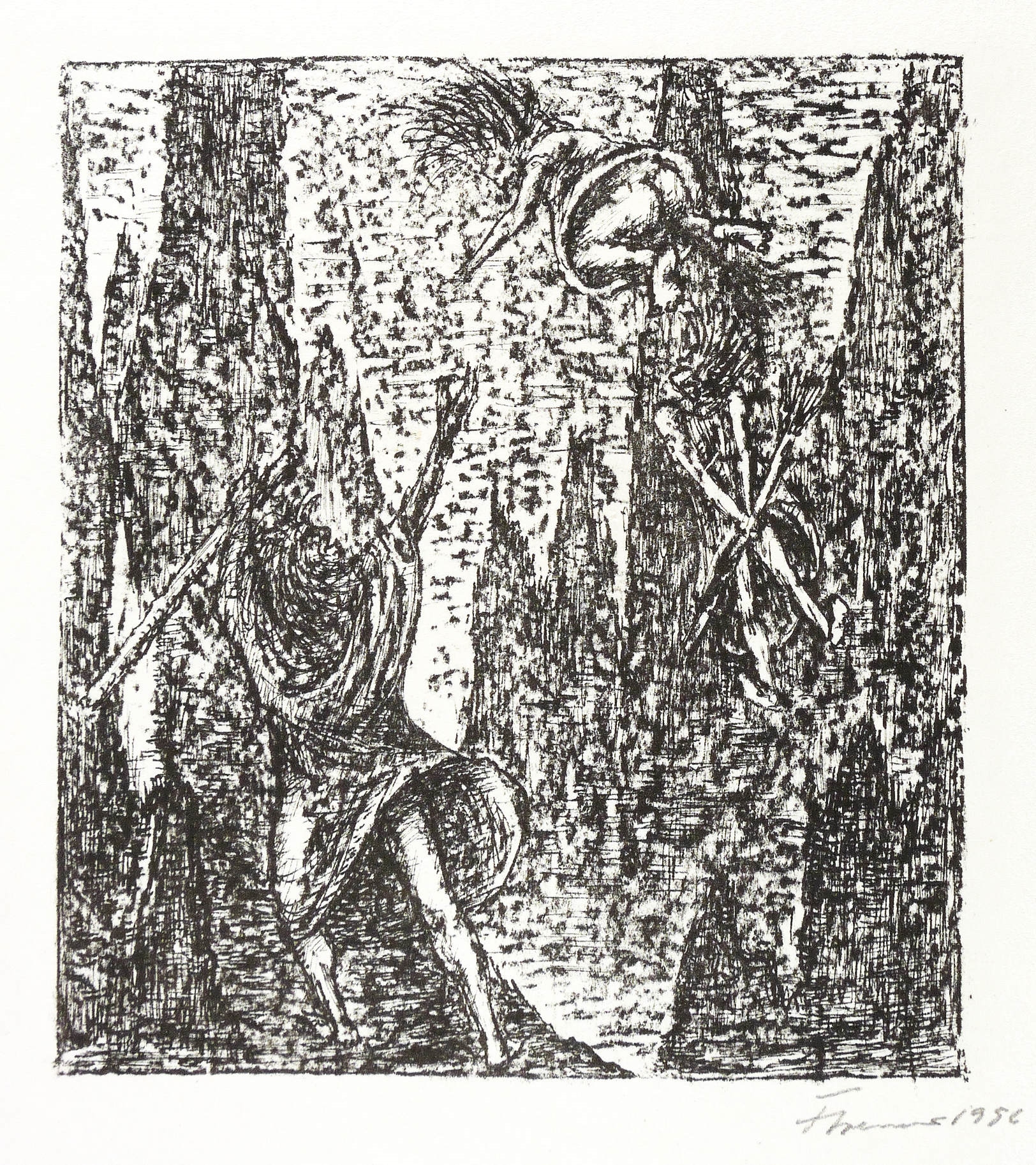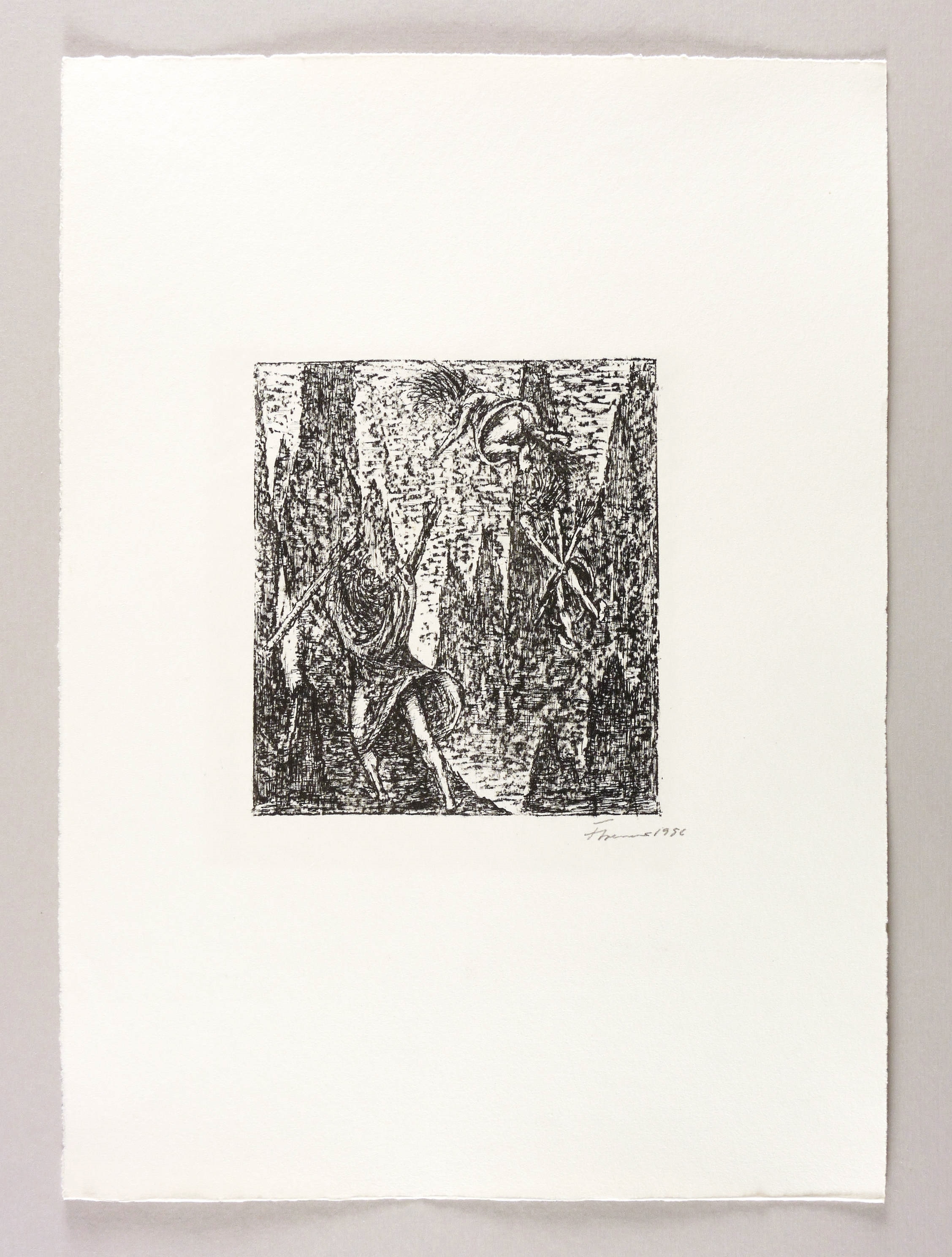 1956. Lithografie / Kreide- & Federlithografie, in Schwarz, auf leichtem hellchamois Velin. – Originale Künstlergrafik, von Fritz Cremer. – Auflage 50 Exemplare. – 17,7 x 15,8 cm (Darstellung / Druckbild), 44 x 32 cm (Blatt).