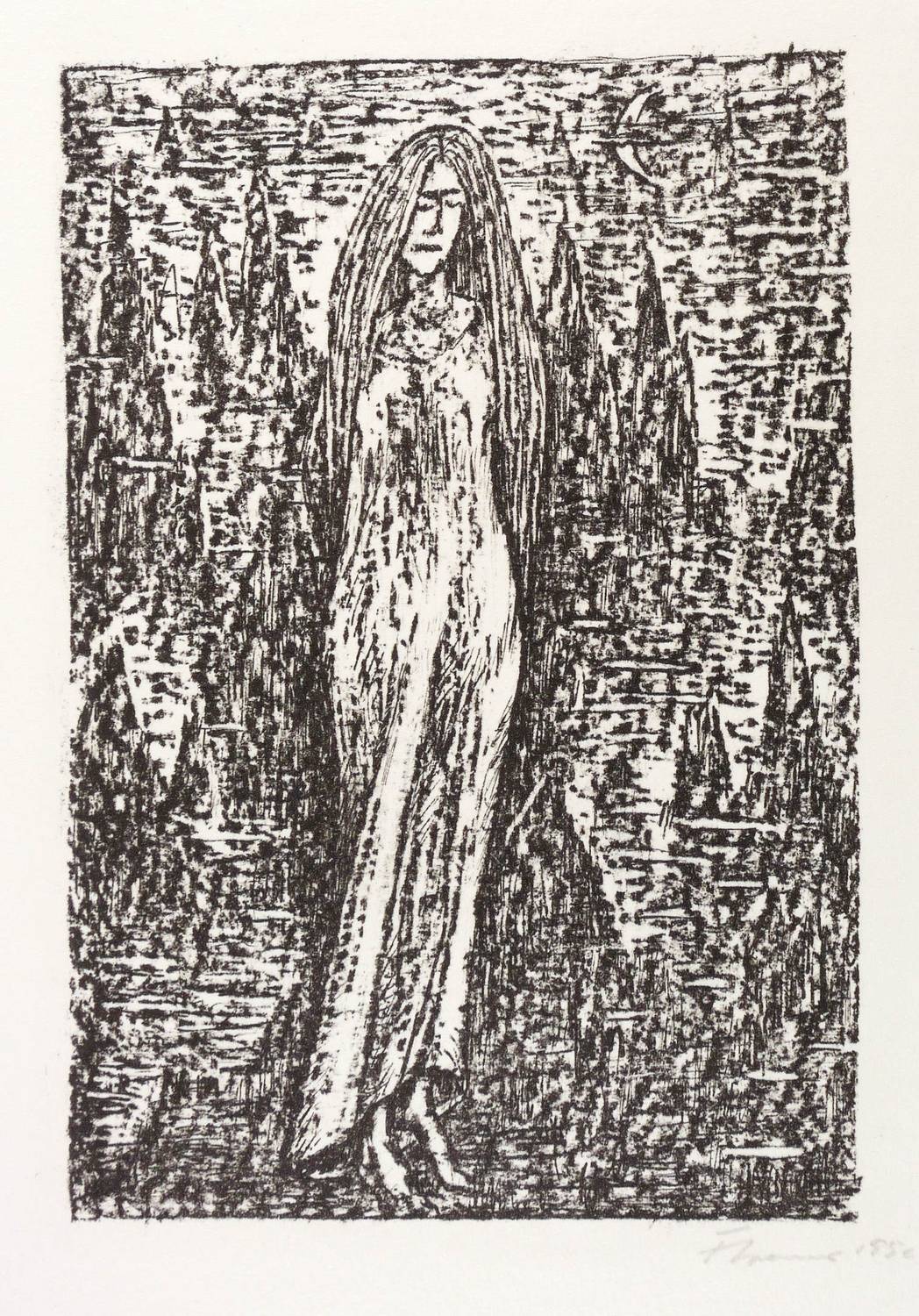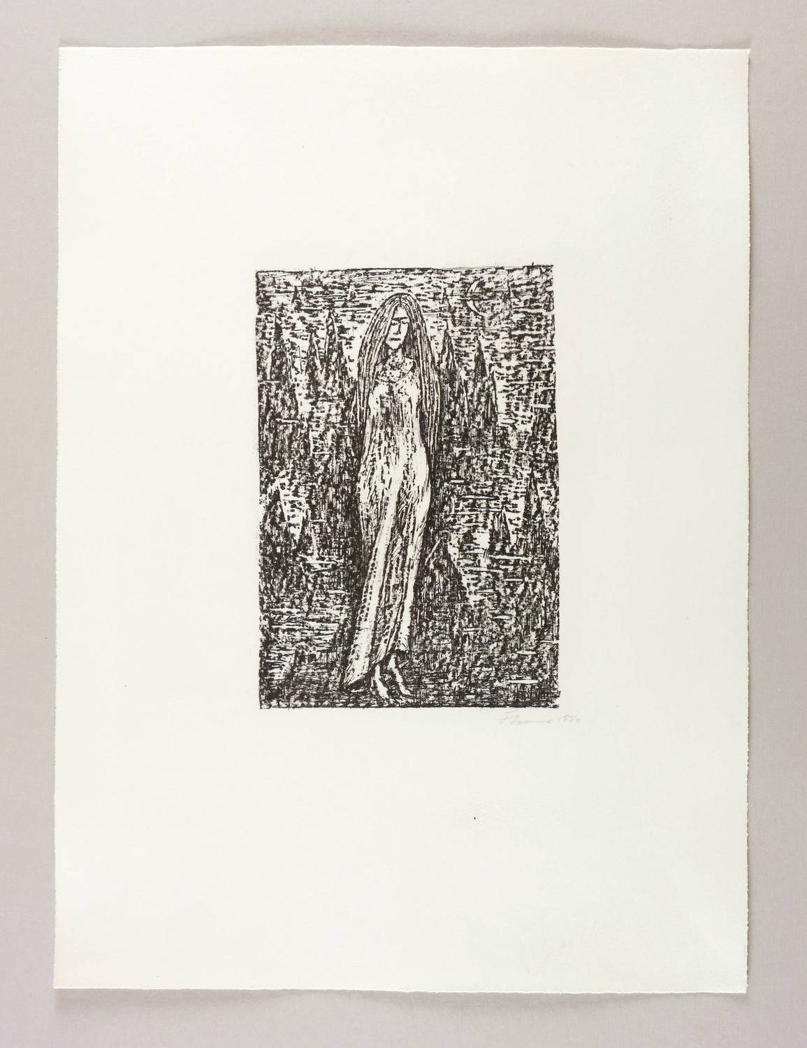 1956. Lithografie / Kreide- & Federlithografie, in Schwarz, auf leichtem hellchamois Velin. – Originale Künstlergrafik, von Fritz Cremer. – Auflage 50 Exemplare. – 20,5 x 13,9 cm (Darstellung / Druckbild), 44 x 32 cm (Blatt).