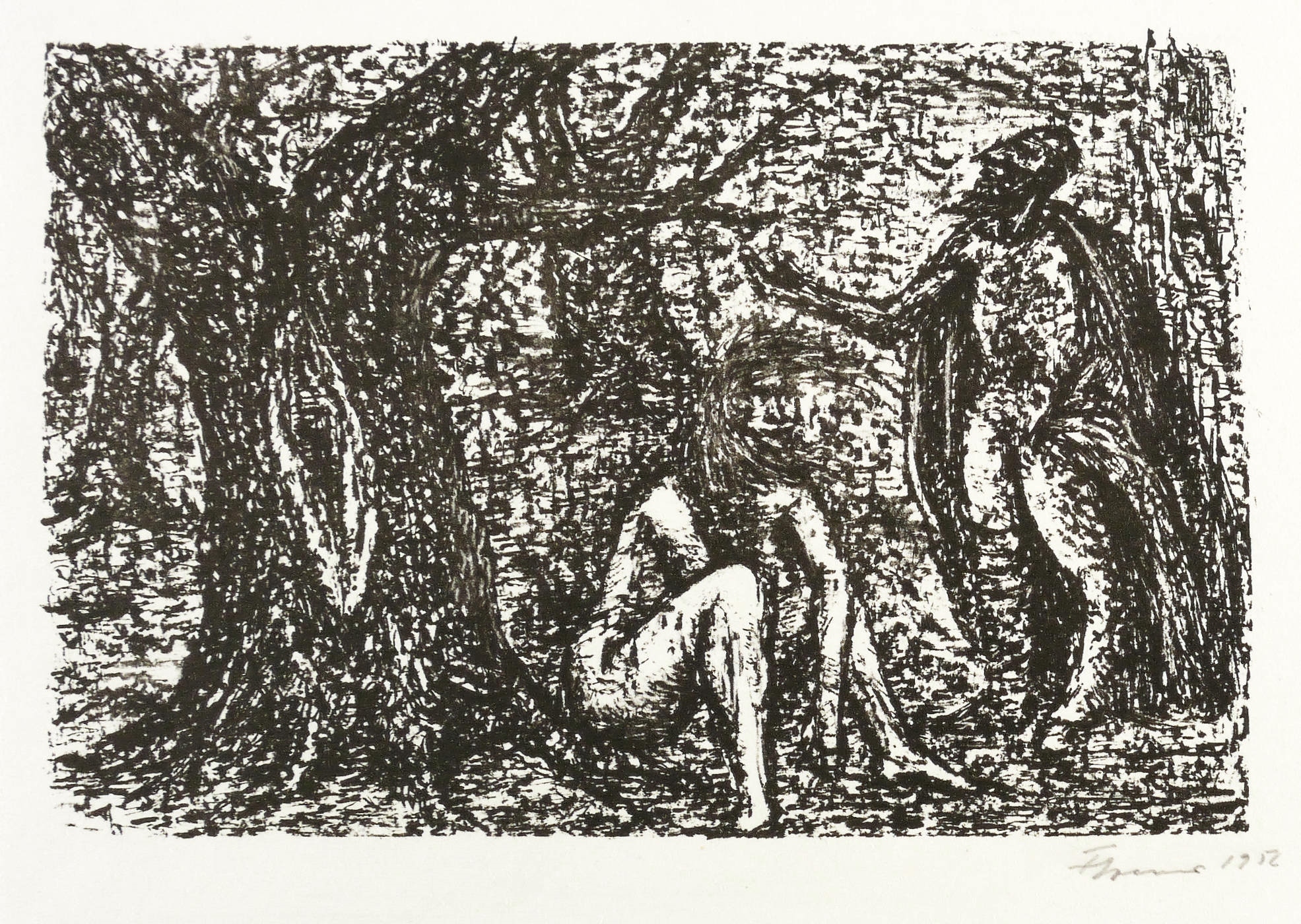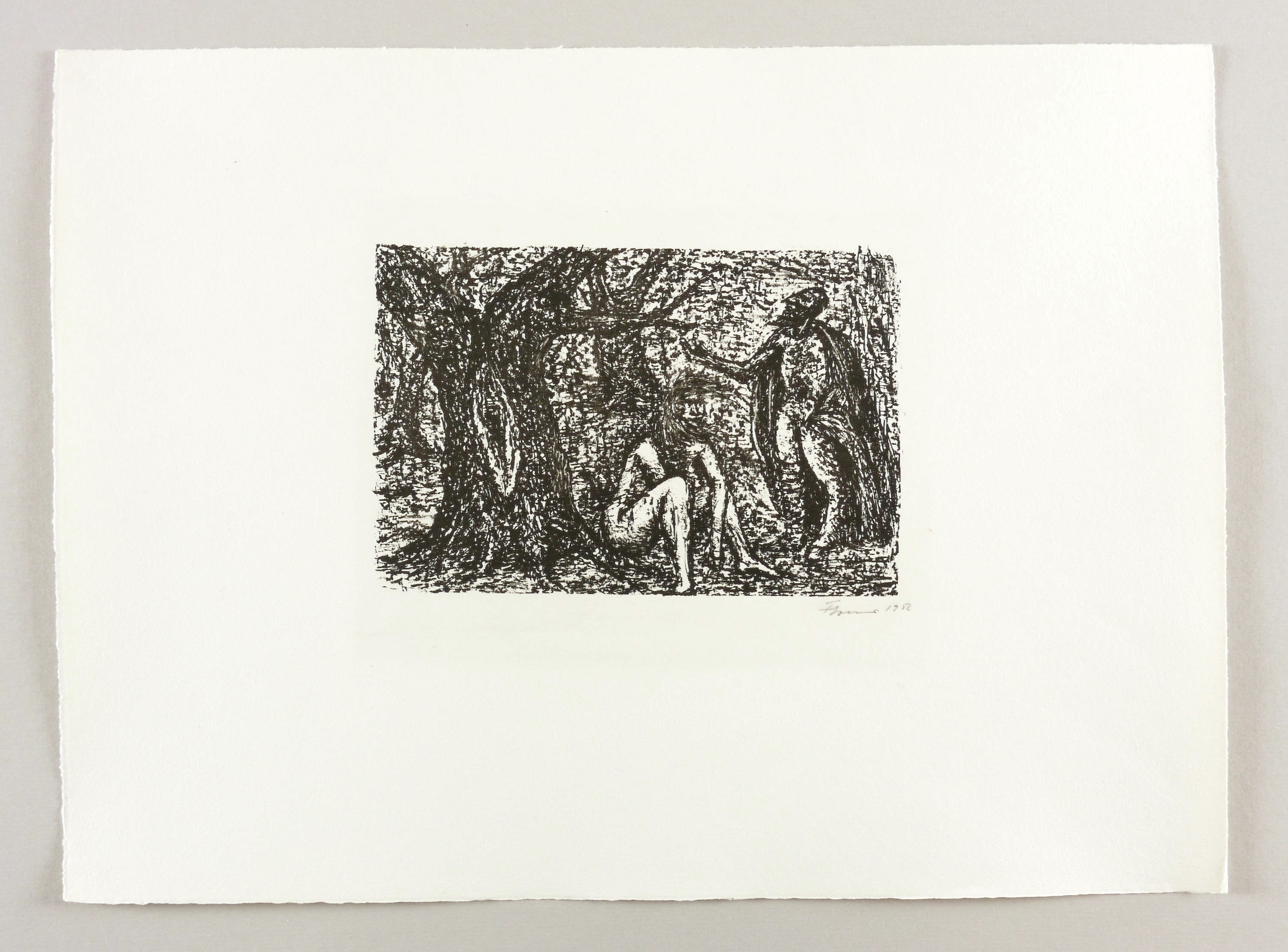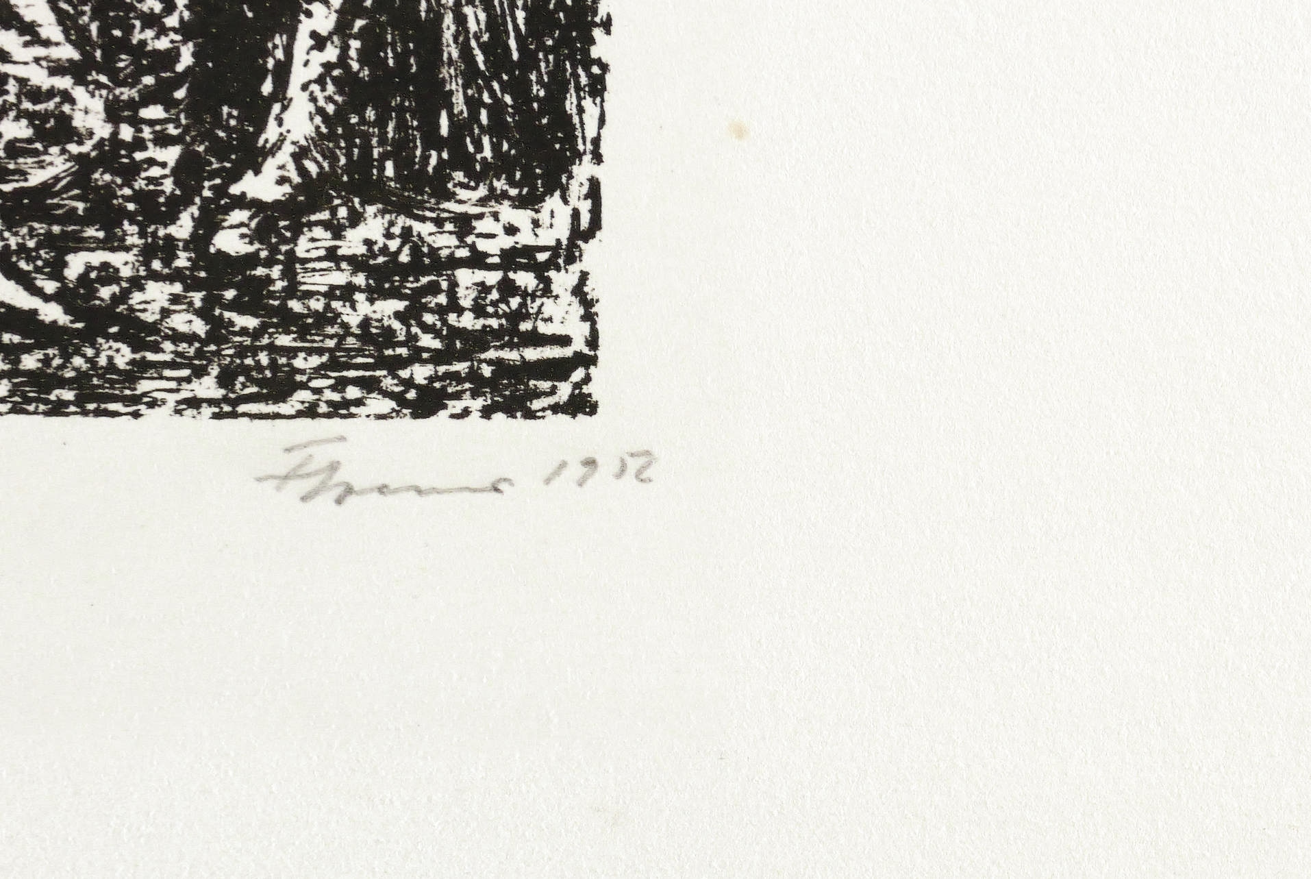 1956. Lithografie / Kreide- & Federlithografie, in Schwarz, auf leichtem hellchamois Velin. – Originale Künstlergrafik, von Fritz Cremer. – Auflage 50 Exemplare. – 13,1 x 19,9 cm (Darstellung / Druckbild), 44 x 32 cm (Blatt).