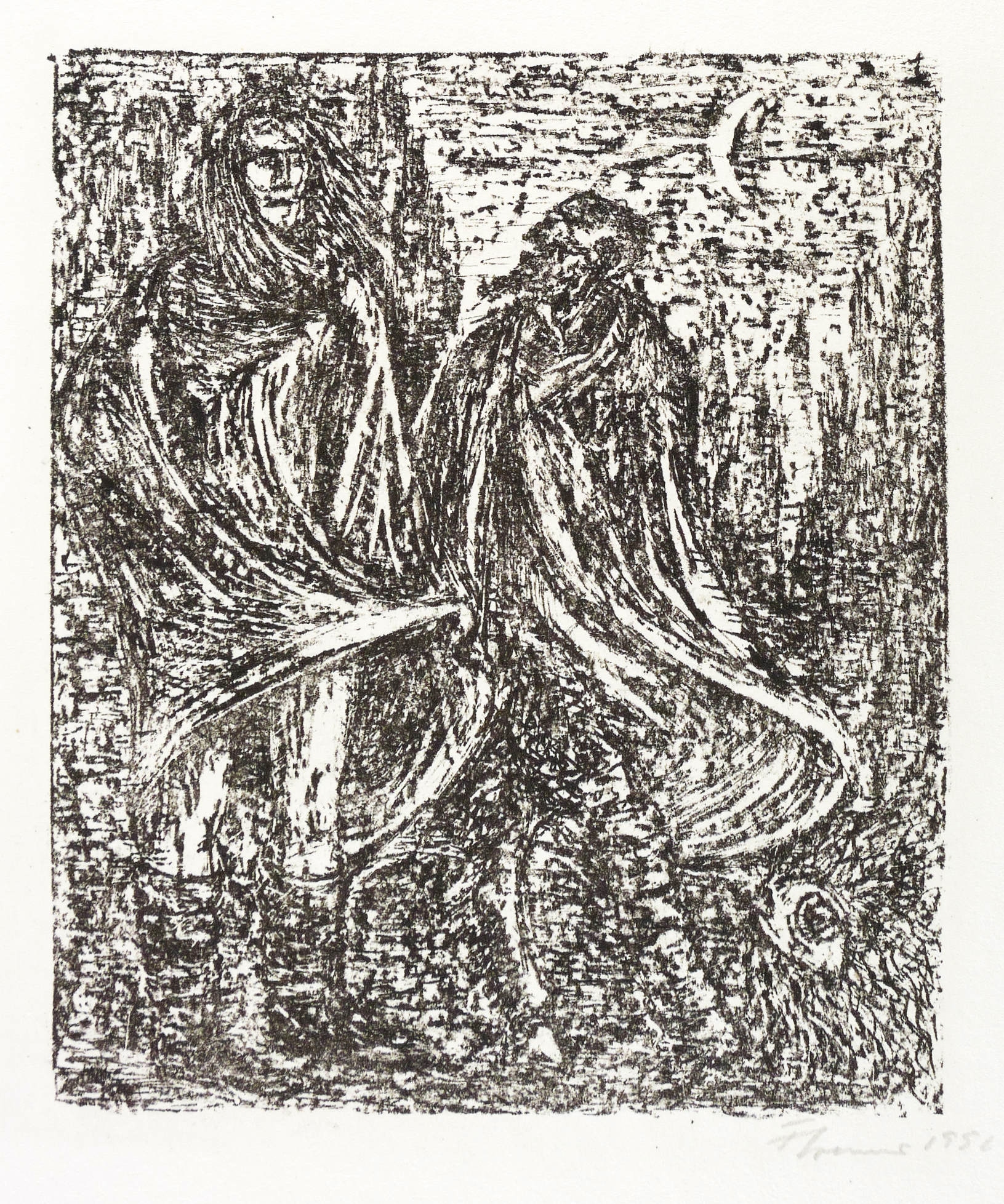 Cremer, Fritz. – Walpurgisnacht. – Blatt 2. – „Faust und Mephisto mit dem Irrlicht”.